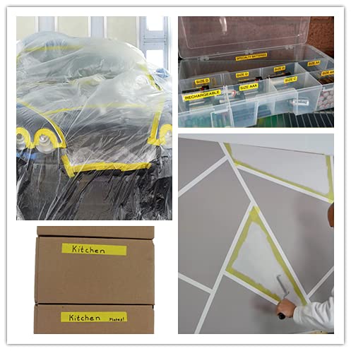 • ?Wide Application - Yellow masking tape ideal for home painting , automobile painting, watercolor painting and acrylic painting.Also can be used as labeling tape for color coding on moving boxes, storage containers, cabinets, cables, documents. Use it in home decoration, party decoration, wall art, greeting cards, scrapbooking, automotive repair and much more.