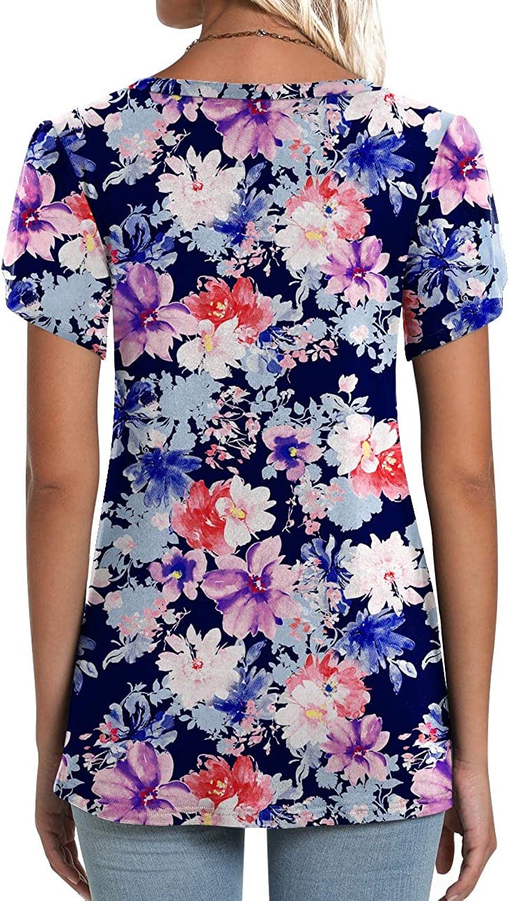 ❤ 【 Features 】 casual tunic top, v neck tops tee, petal short sleeve tshirts, stretch loose blouse, solid color and print, on the hip length, sexy, plain, trendy and elegant.