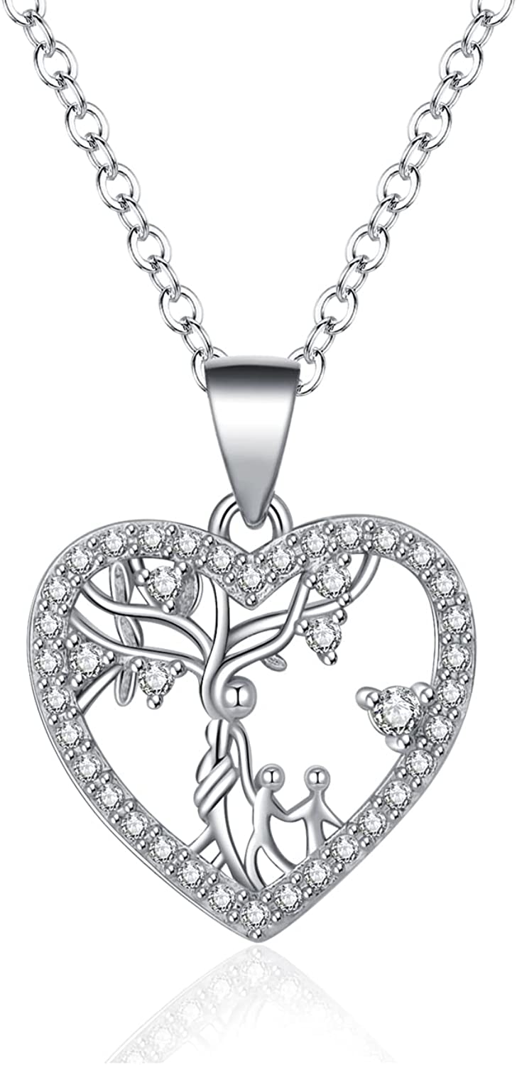 Kattepote Moon Tree of Life Necklace S925 Sterling Silver Crystal Tree of Life Pendant Necklace Celtic Knot Full Moon Tree of Life Women's Jewellery Gift