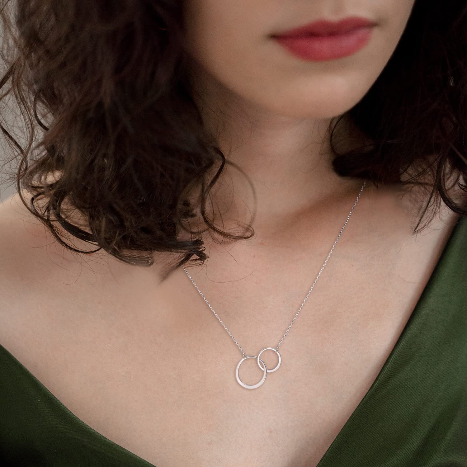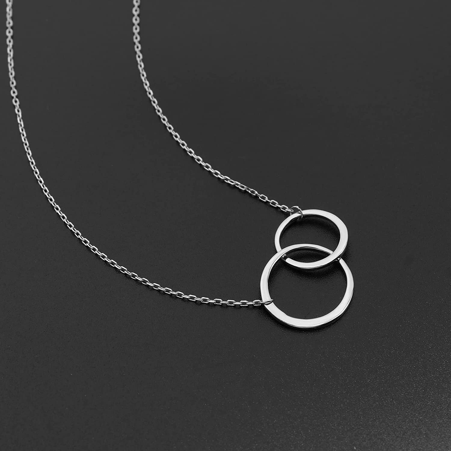 • LENGTH & SIZE: Necklace measurement: 17inches/42cm with 2inches/5cm extension chain, the length practically suit for anyone! The interlocking circles measures 1.2'' and 0.5'' across.Also you can check out the size and the scale on model pictures.