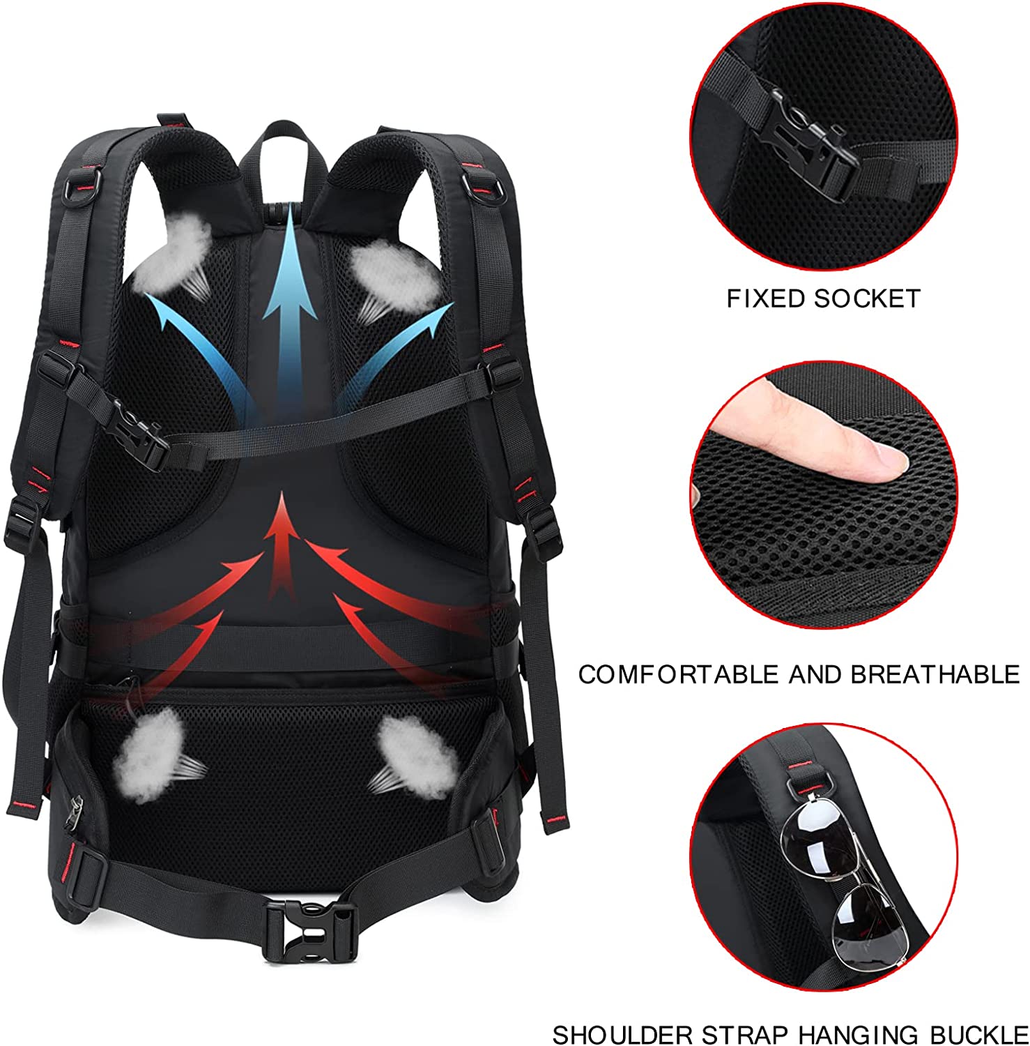- *Large capacity multi compartment backpack: outdoor backpack with 40 liters of storage space (20.5 inches x 13.5 inches x 7.5 inches). The backpack has a multi compartment design, including a main zipper compartment, a zipped front pocket, two front zipper pockets and two side zipper pockets. One of the 15.5-inch compartments is convenient enough to accommodate the main laptop. Large capacity helps you easily organize all your important items.