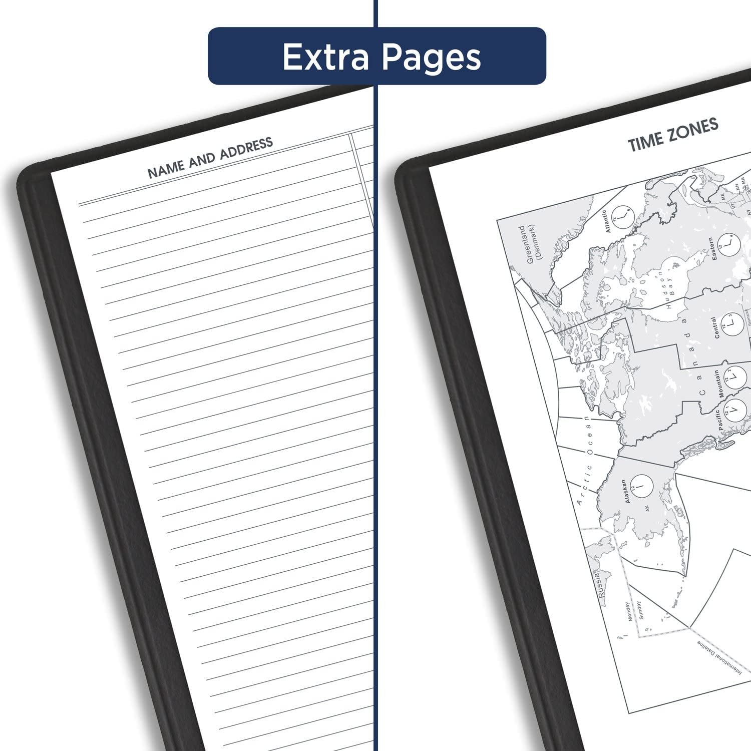 Guaranteed to last all year. Confidently face every deadline, special events and more. The AT-A-GLANCE Weekly Planner covers 13 months from January 2023 - January 2024. Plan your schedule without fear of distracting ink bleeding. Our improved, high-quality paper is designed for superior ink bleed resistance, which keeps plans neat and legible. Each day Monday-Saturday has a ruled column with 15-minute appointment times, while Sunday are condensed. Each page measures 7" x 8-3/4", with one week per two-page spread. Take charge of your schedule with classic style. Planner has a black faux leather cover and twin wire binding. Expand your organizational skills with special pages. Includes a personal information page, 3 year reference calendar and telephone/address pages. ACCO Brands will replace any AT-A-GLANCE planner that is returned within one year from the date of purchase. This guarantee does not cover damage due to misuse or abuse. Contact ACCO Brands Consumer Affairs for instructions.
