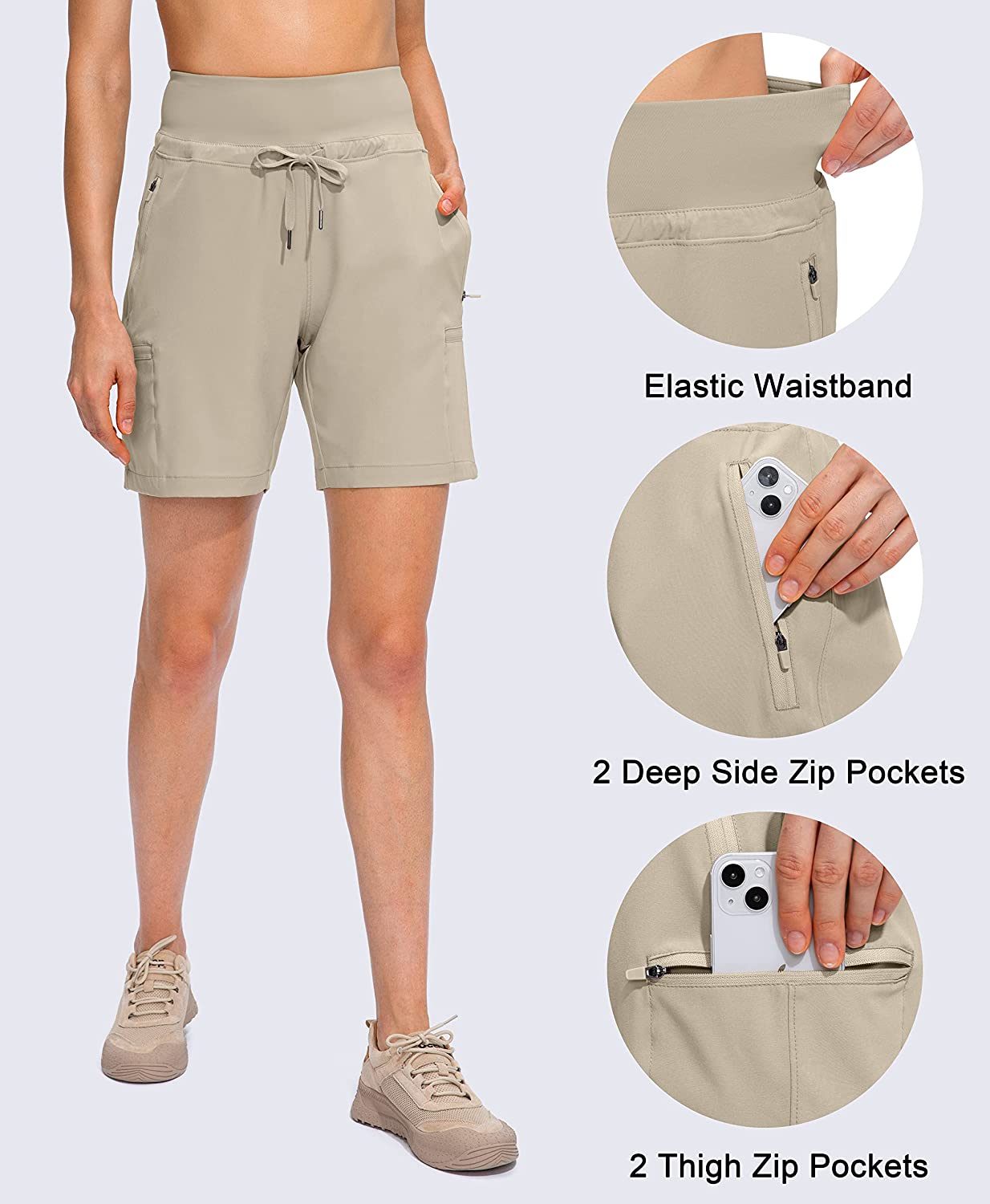 • 7'' Long Inseam: The womens 7 inch inseam shorts provide enough coverage from sunshine. They are perfect for hiking, golf, travel, camping, climbing, kayaking, walking and daily casual wear.