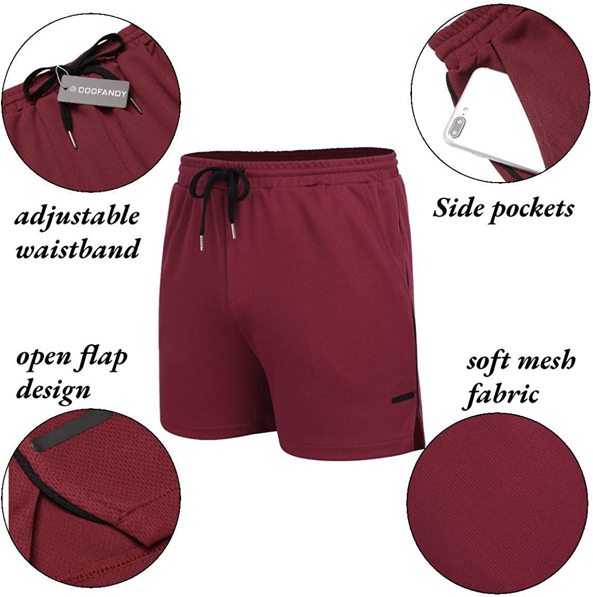 - High quality mesh fabric, soft, lightweight, stretchy and quick dry. These gym shorts always keep you comfortable during your workout and other activities.
