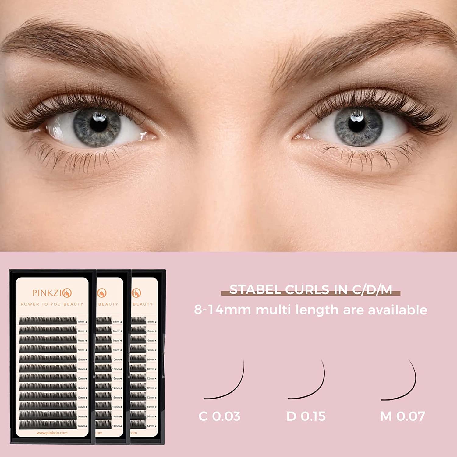 Professional 3D Faux Lash Extensions Kit - PINKZIO Eyelash Extension Supplies with Semi-Permanent Lash Extension Glue, Lash Remover, Precision Tweezer, Mascara Wand and Classic Lashes,White