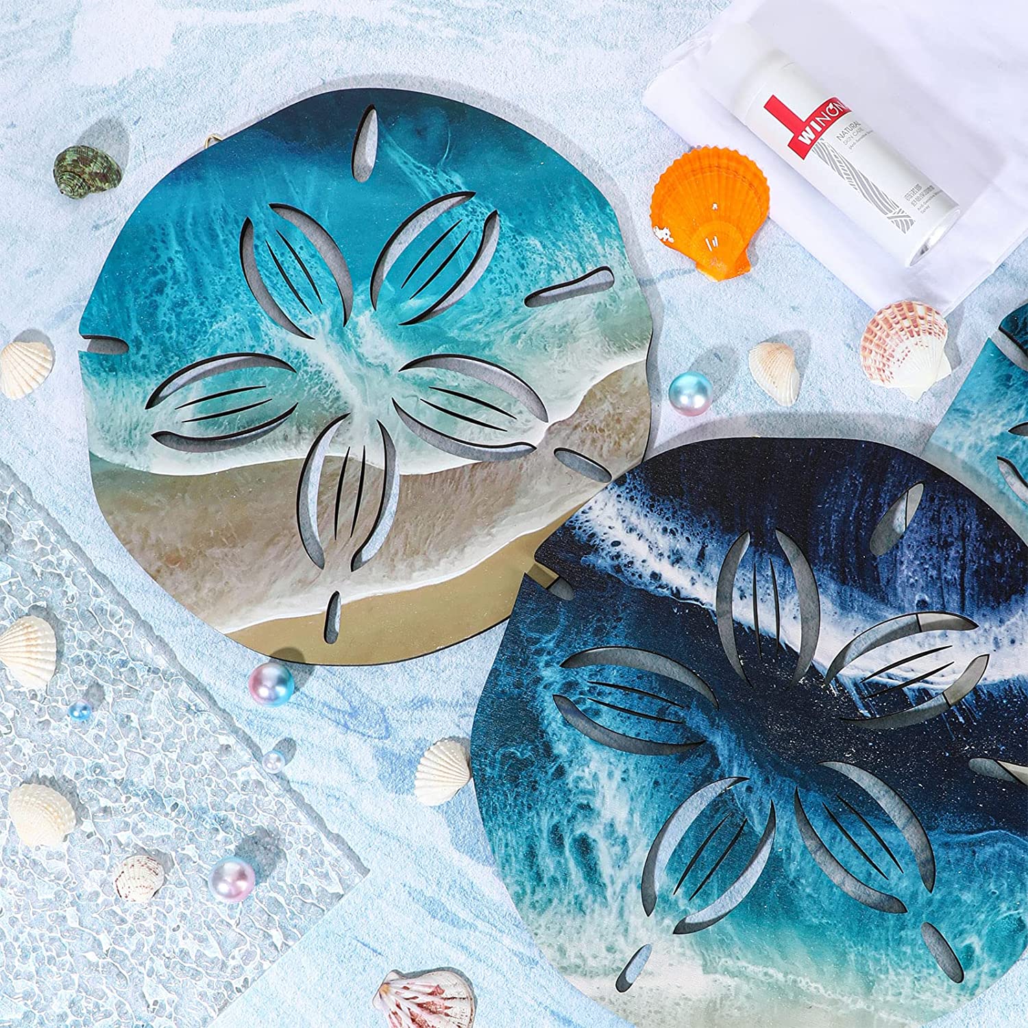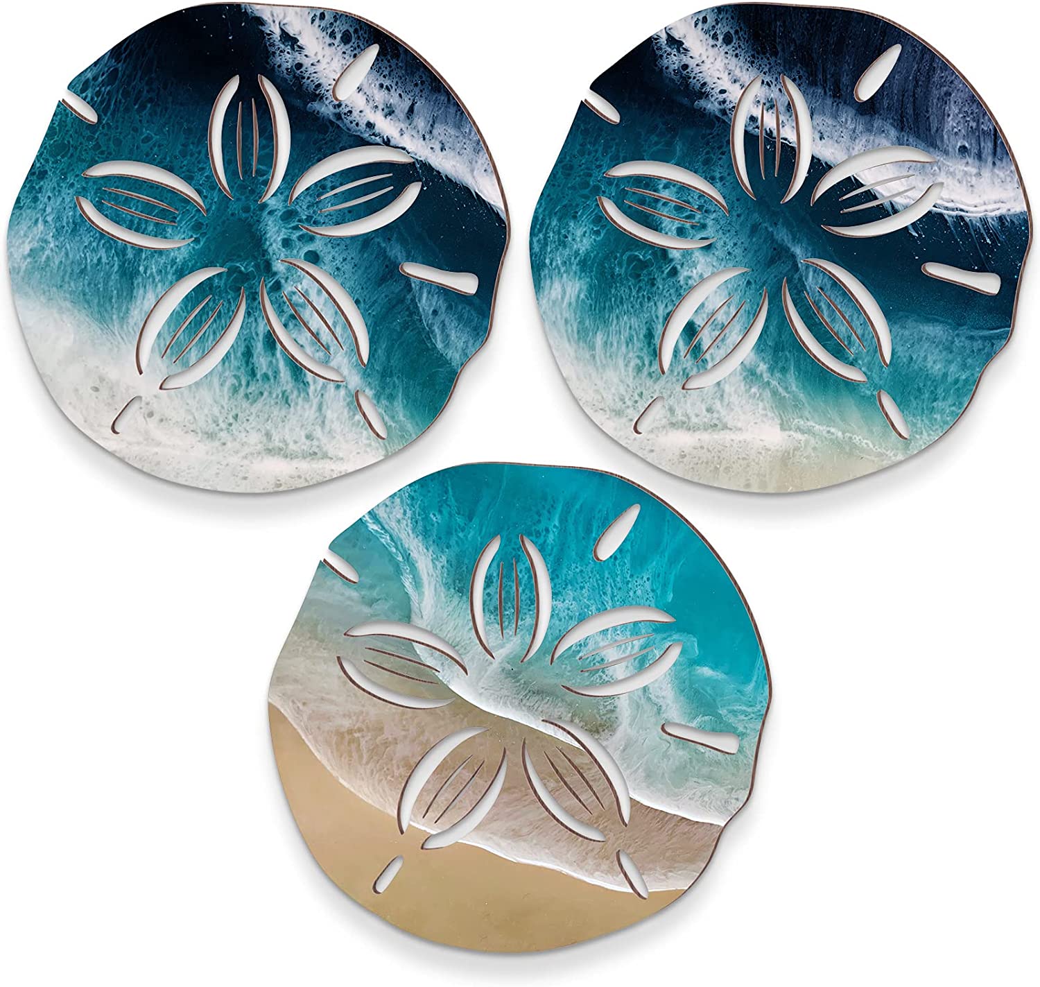 Jetec Sand Dollar Wall Decor 3 Pieces Wood Outdoor Coastal Wall Art Ocean Beach Sand Dollars Decor Wooden Sand Dollar Art Teal Seafoam Wall Decor for Home Bathroom Decor (Delicate Style)