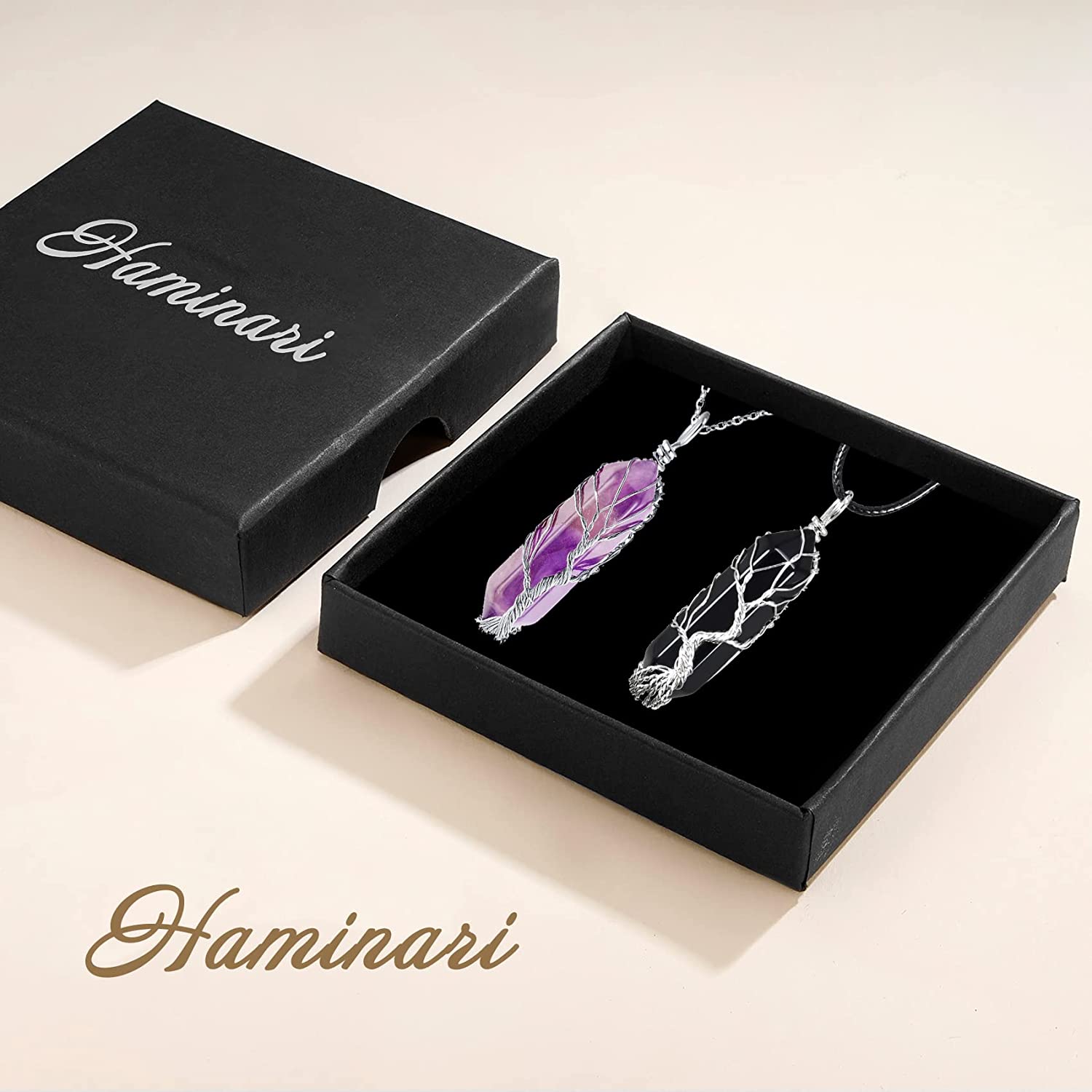 Haminari Obsidian Necklace,Healing Crystal Necklace for Women and Men Adjustable Energy Crystal Pendant Necklace Reiki Spiritual Gemstone Stone Jewelry with Luxurious Box (Style A)