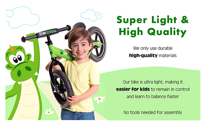 TheCroco Balance Bike allows children to focus on balancing rather than pedaling. It develops their coordination and confidence, making the transition to a pedal bike much easier. Created with ultra light and supreme quality, our bikes are designed to provide happiness that lasts for both you and your child.