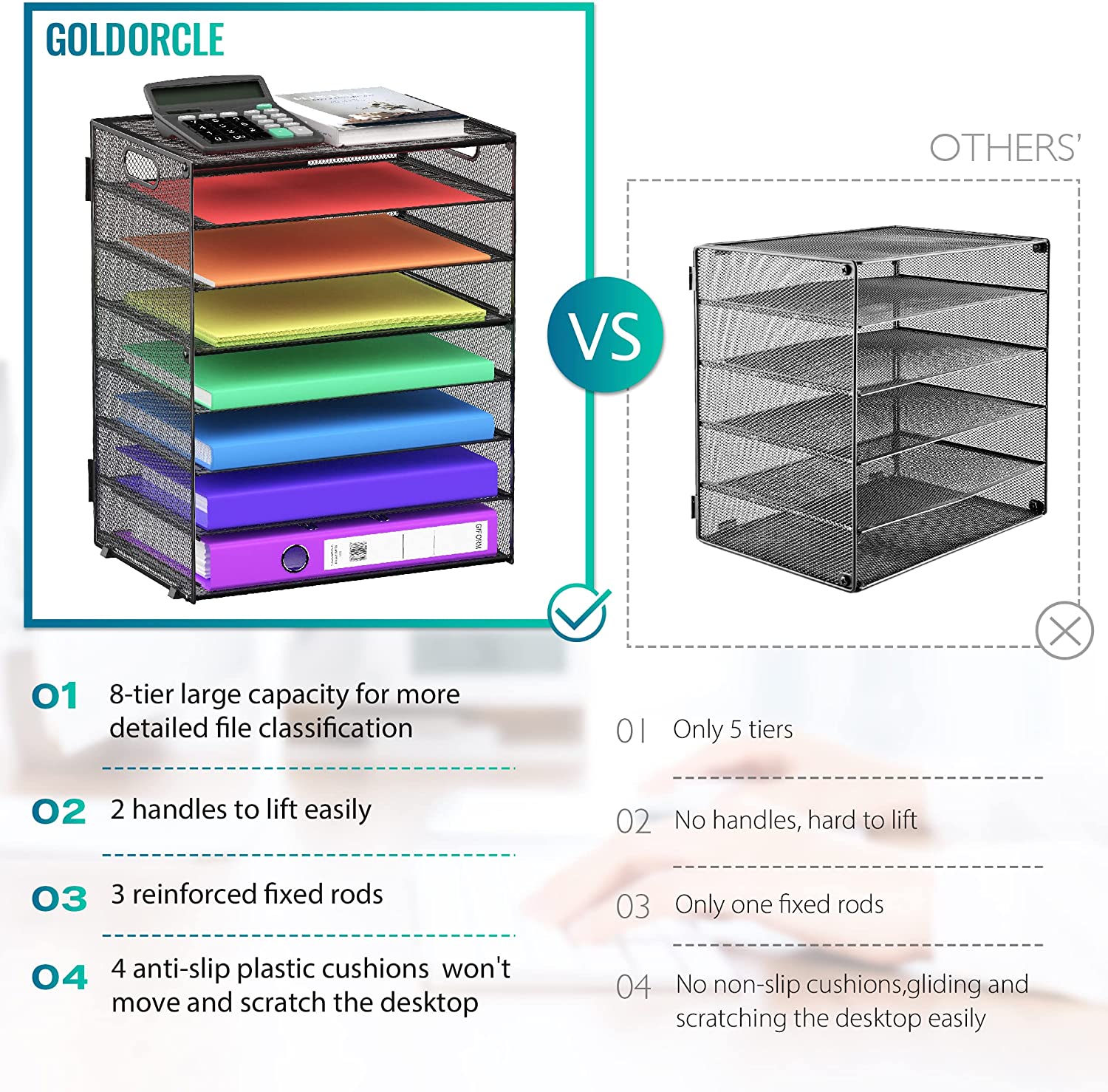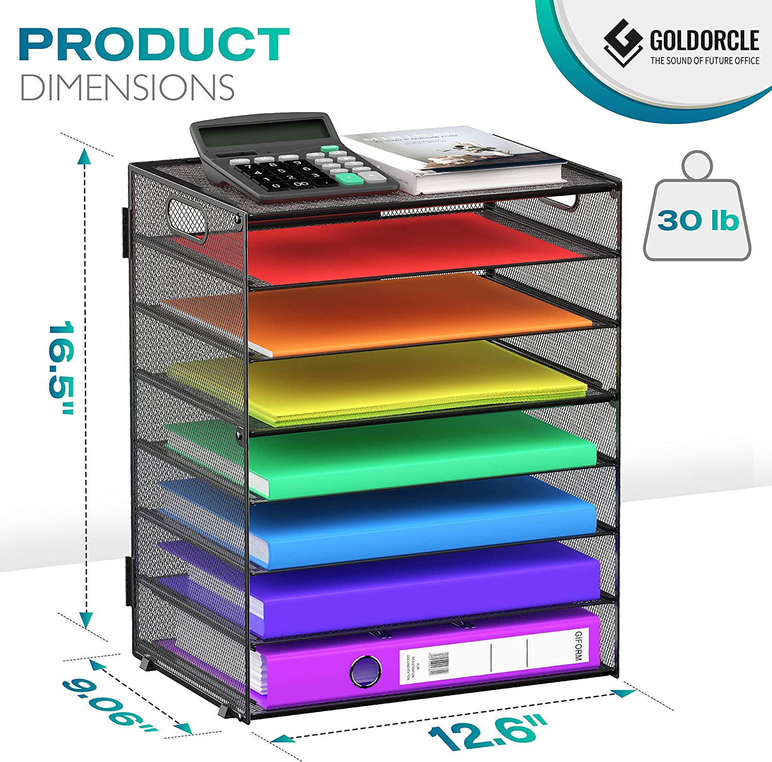 【8-Tier Large Capicity】Measures 12.6 L x 9.06 W x 16.5 H in total, 2.2 inches for each tray. The desktop paper tray organizer is big enough to hold more files and classify your paper more detailed