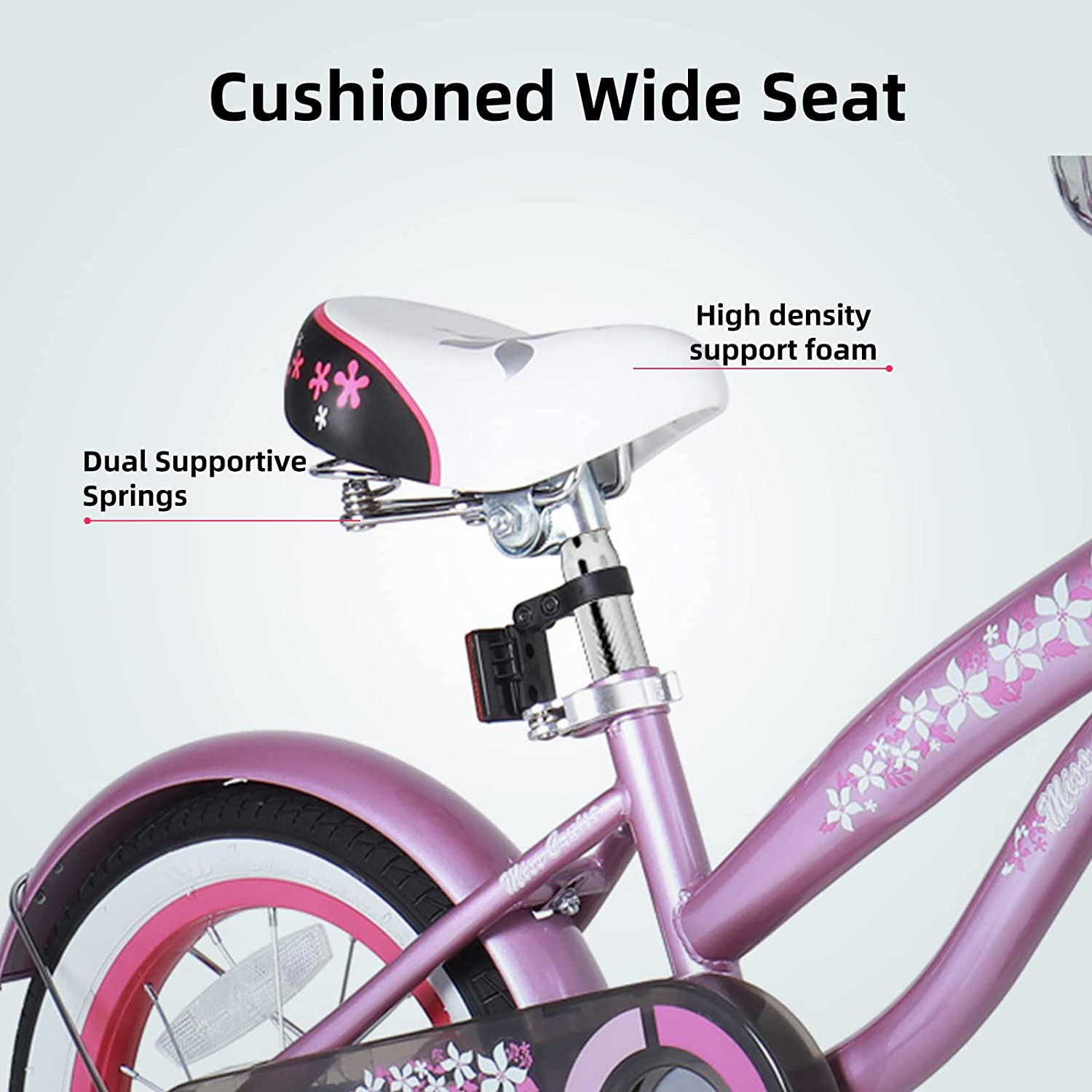 • YOUR CHILDREN WILL LOVE IT-Singlespeed drivetrain and smaller grip design keep it easy for her to learn and feel comfortable behind the wheel. Dual Spring Kid's Cruiser Seat for Added Comfort. The children can stick their names on the frame or chain guard with DIY Decal stickers to make a unique bike.