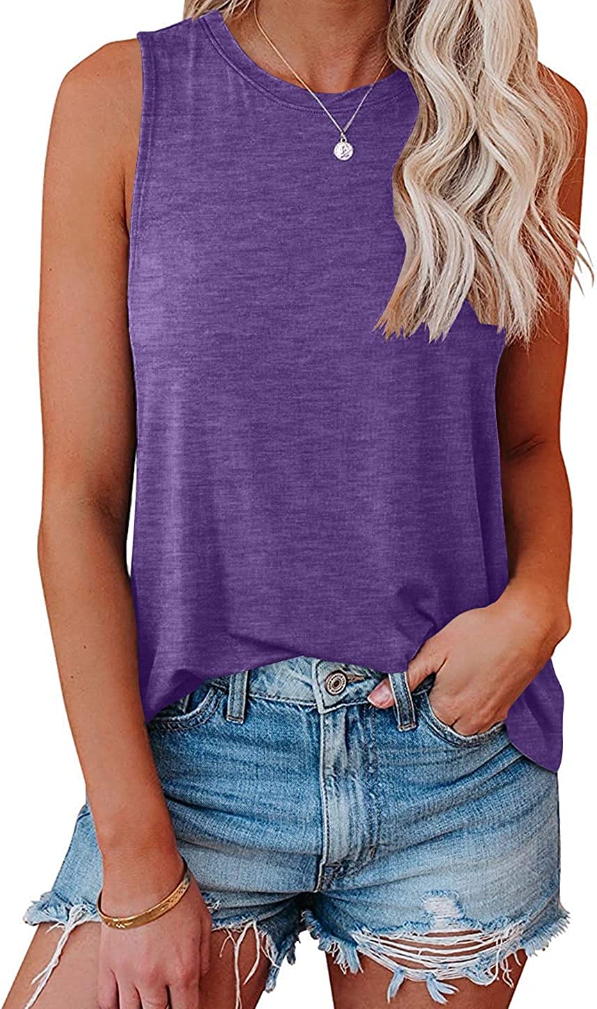 Bliwov Womens Tank Tops Crewneck Loose Fit Basic Solid Color Casual Summer Sleeveless Shirts