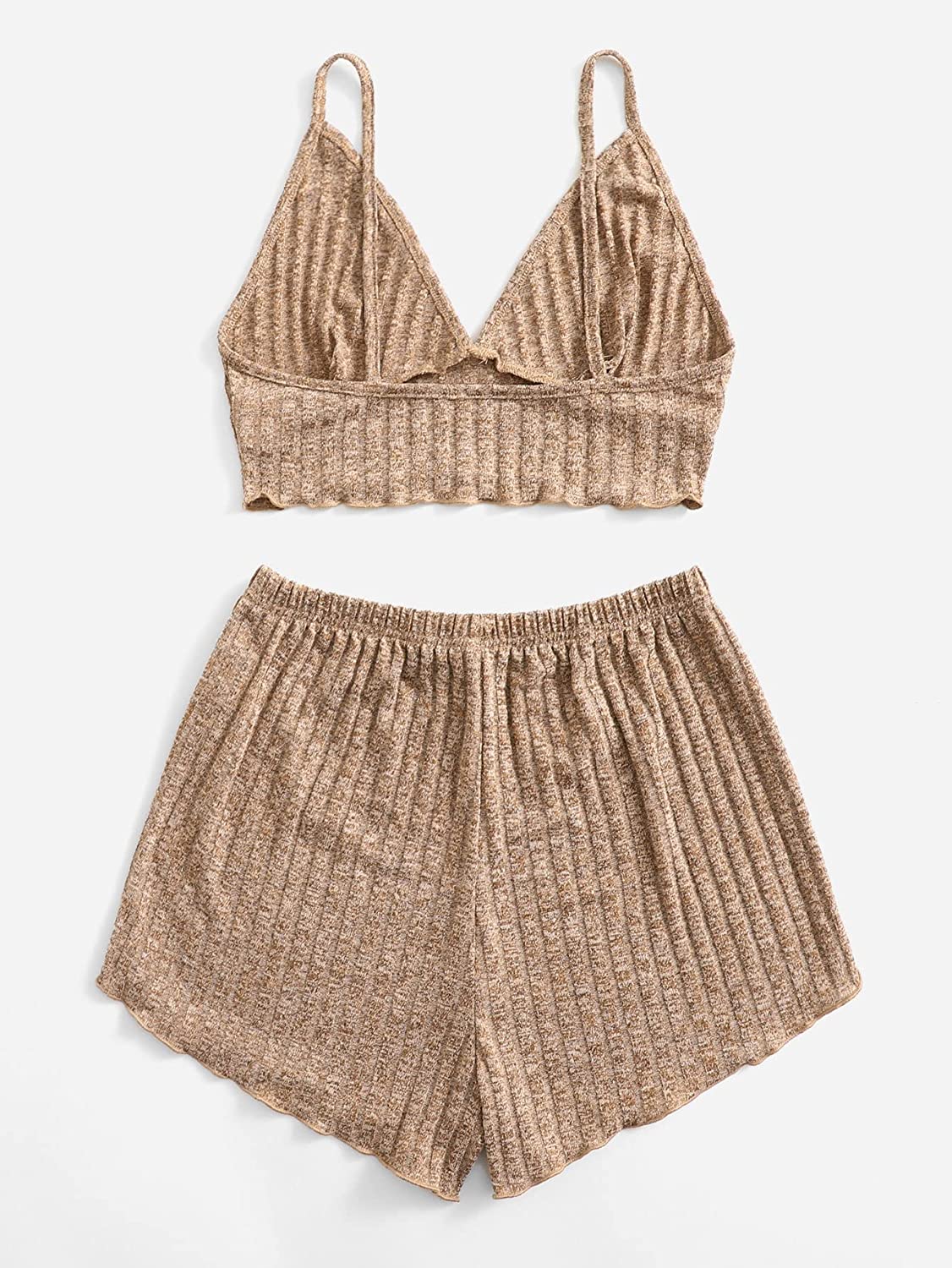 SOLY HUX Women's Sleepwear 2 Piece Lounge Set Pajama Set Rib Knit Spaghetti Strap Bralette Top and Shorts