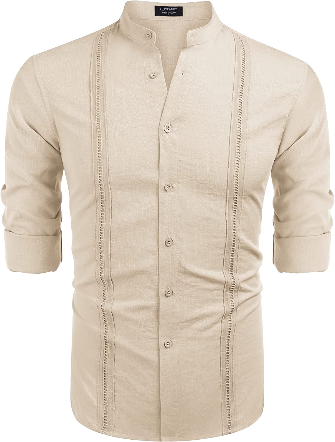 COOFANDY Men's Long Sleeve Button Down Banded Collar Casual Summer Beach Shirts