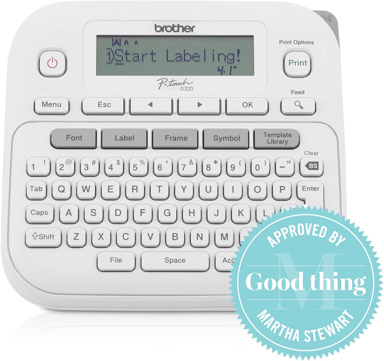 Brother P-Touch PTD220 Home/Office Everyday Label Maker | Prints TZe Label Tapes up to ~1/2 inch, White