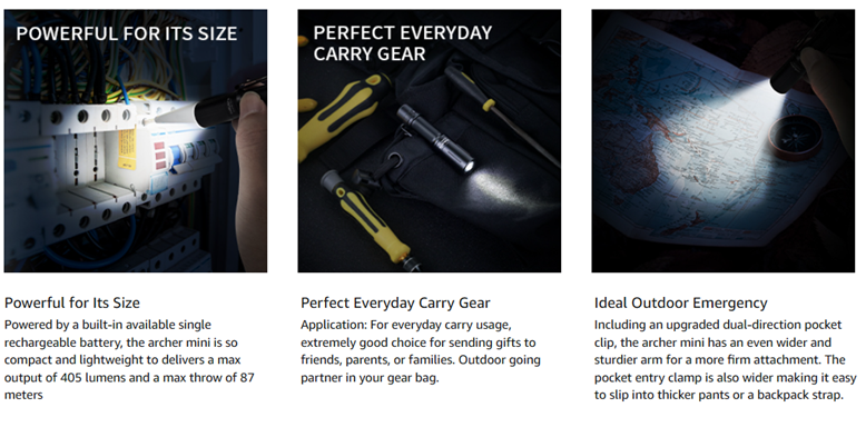 Specific Uses | Camping, Hiking, Dog Walking, Hunting, Boating, Patrolling, Working, Runing, Power Outages, Emergency, Inspection, Repair |