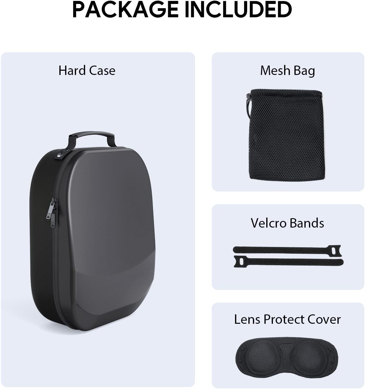 ☑️Reliable Service - If there is any quality problem, we will give you a 100% refund. Packaging includes 1 Oculus Quest2 storage case*, 1 lens protection cover*, 1 mobile storage mesh bag*, and 2 velcros*.