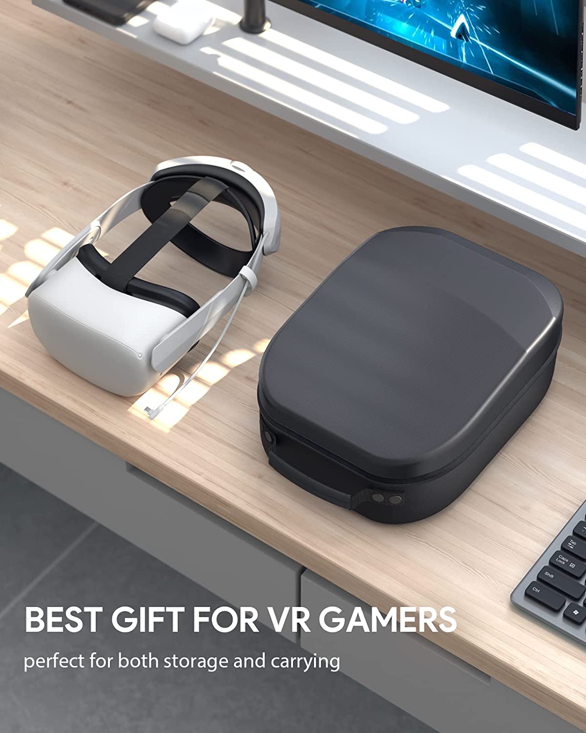 ☑️1:1 Customisation - This hard case is customized specifically for the Oculus/Meta Quest 2(?and the latest PICO 4?). It can hold the head strap (or head strap with battery), controllers, cables, and power adapter altogether. (Dimensions: 31.00 x 22.00 x 13.50 cm Weight: 534 g)