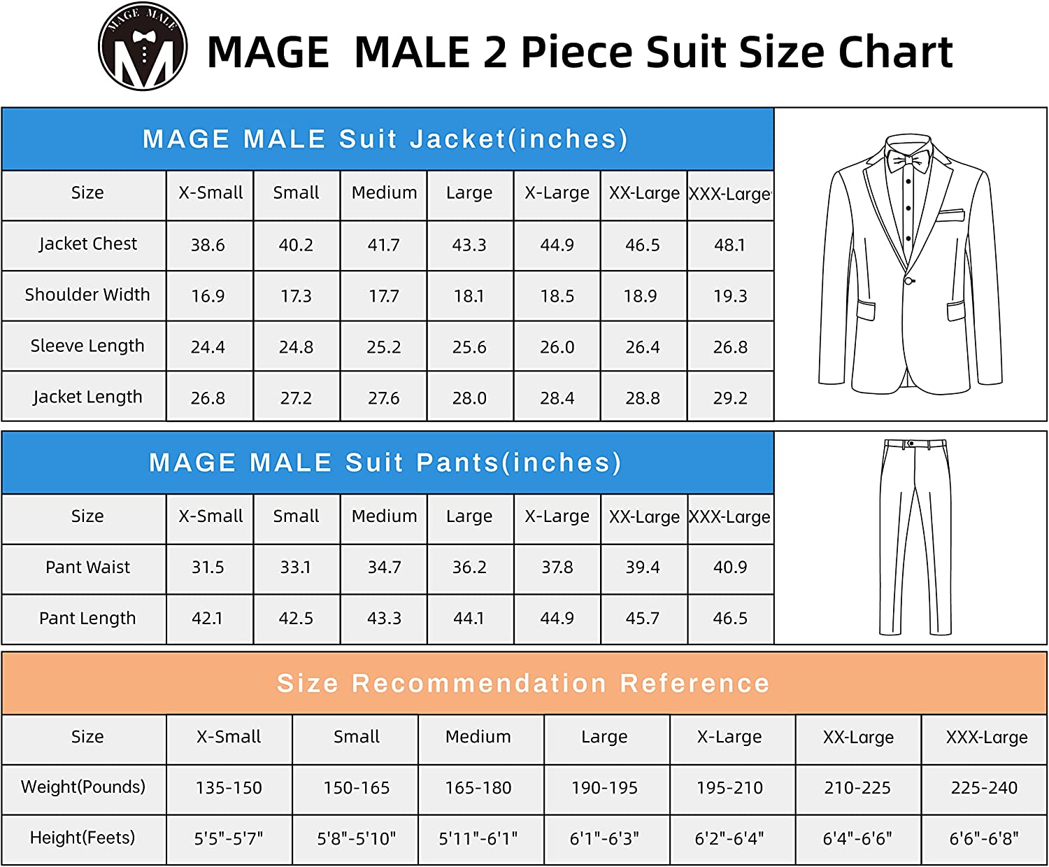 Wait,just one last thing before ordering:Let's check the MAGE MALE men's suit size chart carefully.