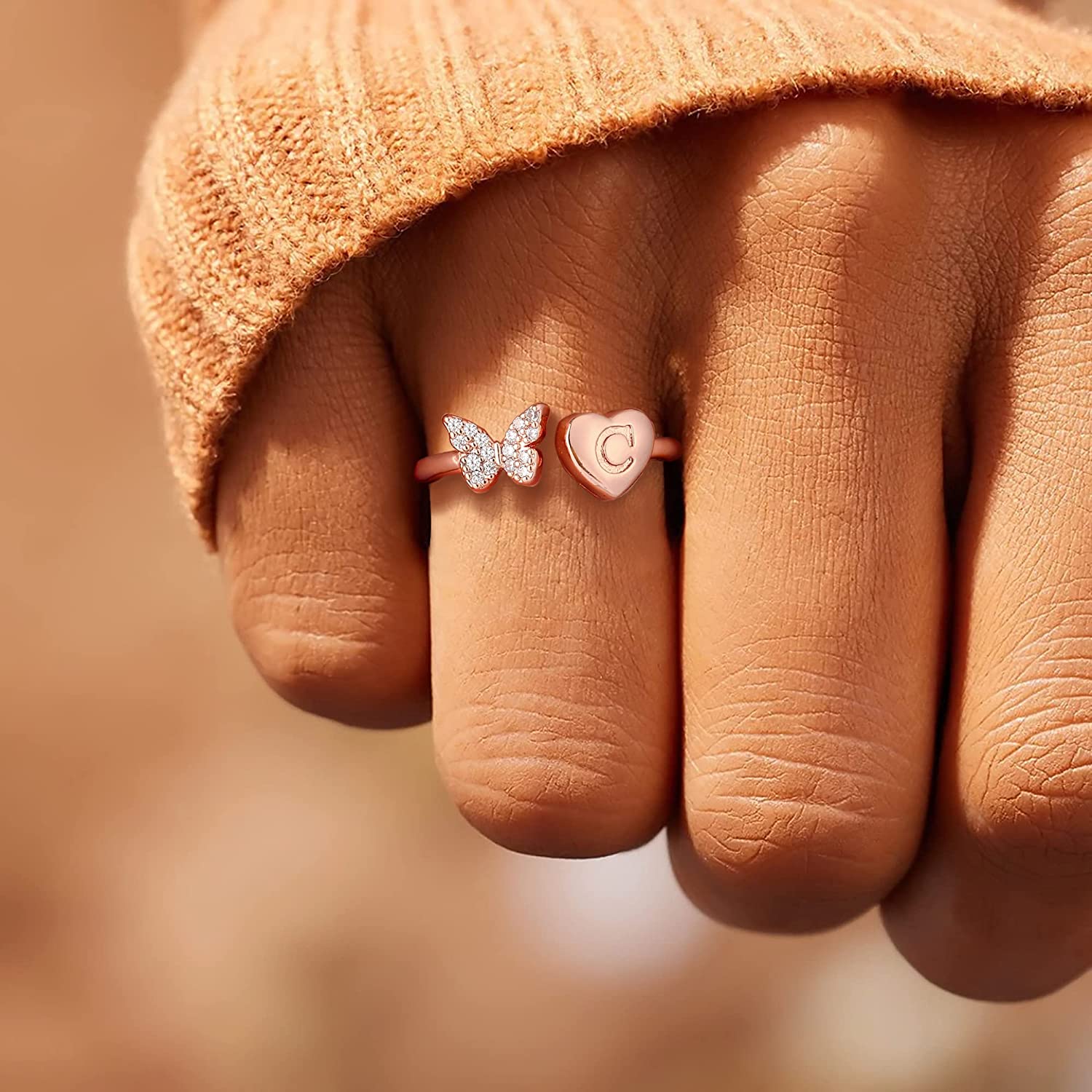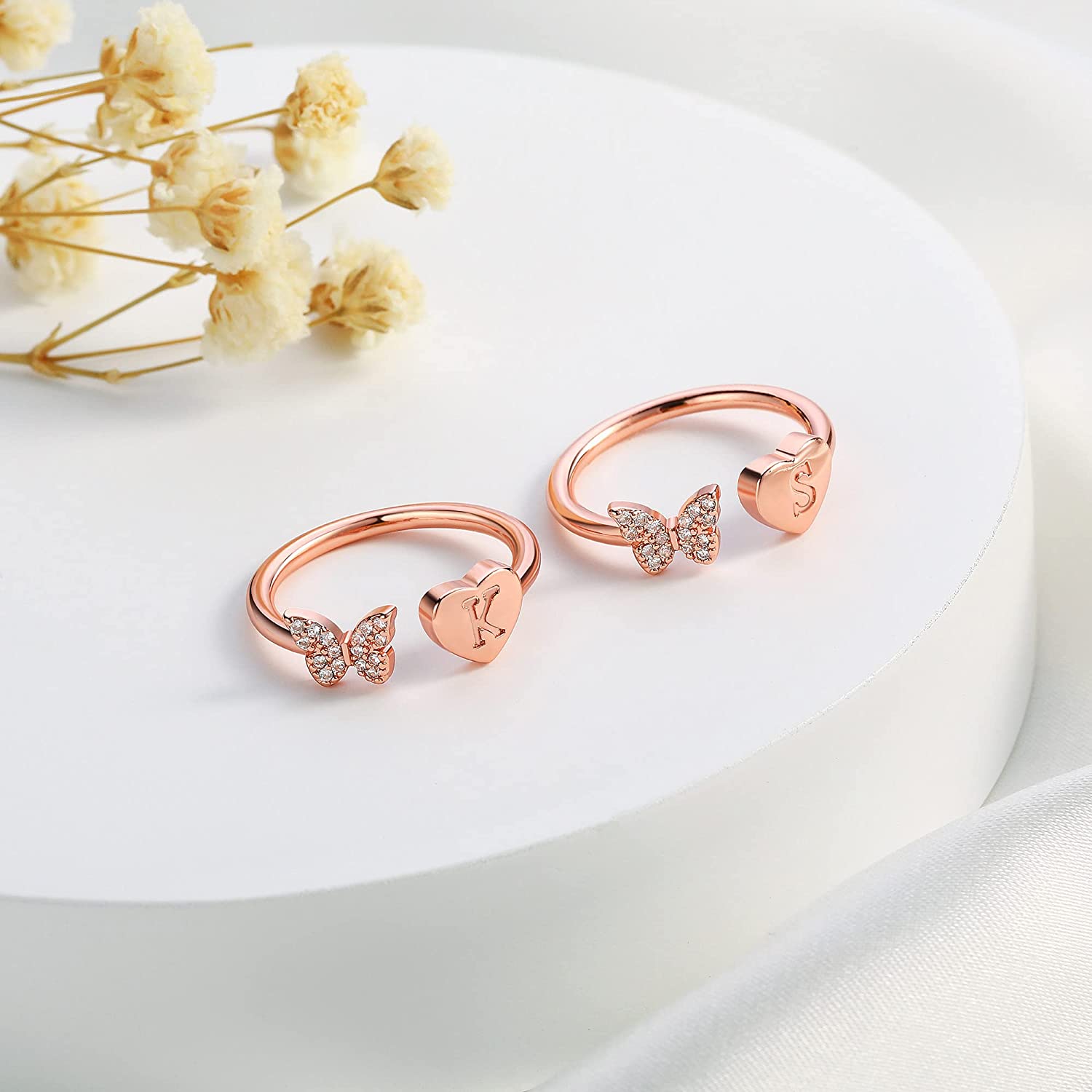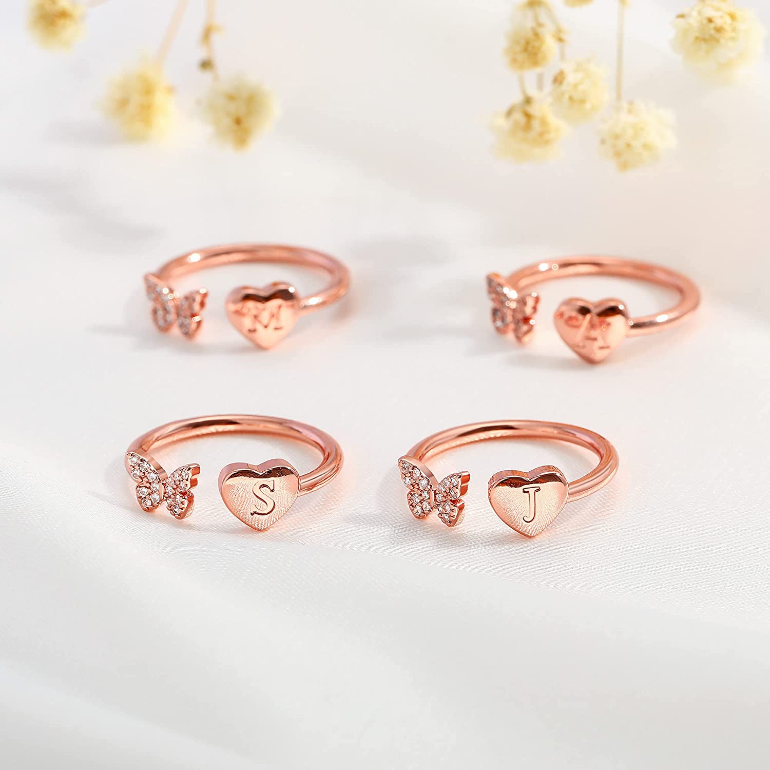 • PERSONALIZED JEWELRY: Butterfly capital letter rings, with classical style beauty and simplicity, symbols you or your initial name. rose gold ring combines a meaningful symbol with the initials of your loved ones.
