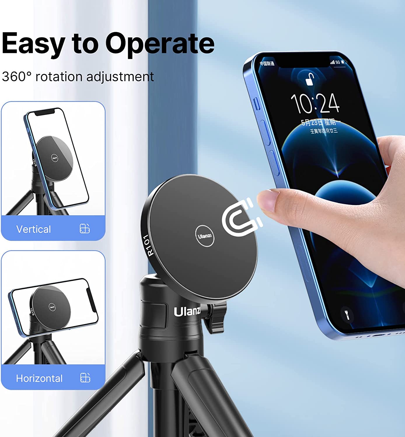 Easy to Operate: Different from traditional mobile phone clips, it only uses strong magnetic force, and the 360° horizontal and vertical screens can be adjusted arbitrarily.