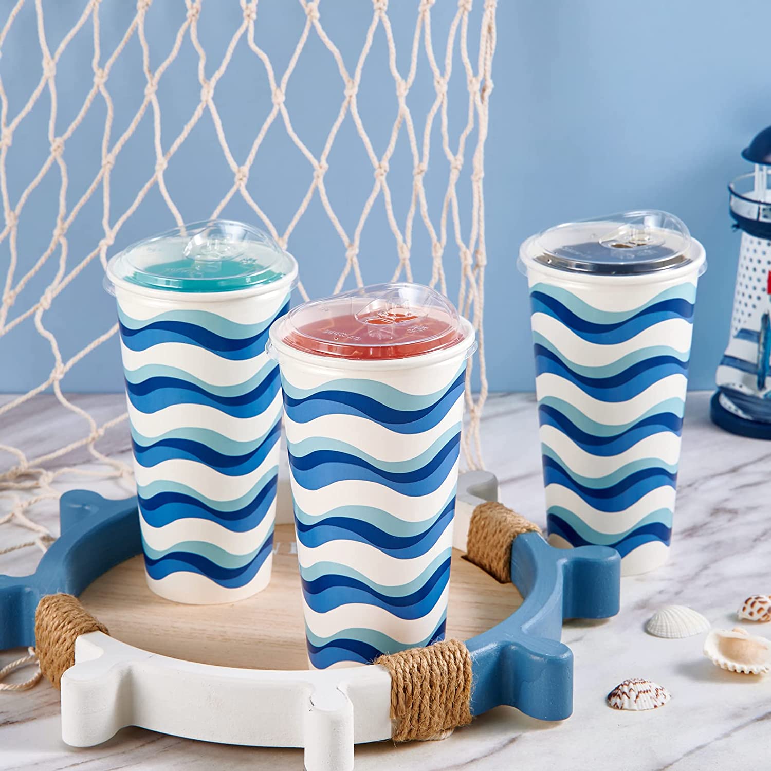 [125 Pack] 22oz Paper Cups, Disposable Paper Cups with Strawless Sip Lids, Paper Cold Cups With Lids Specially Designed for Cold Drinks, Beverages, Juices, and All Kinds of Cold Drinks