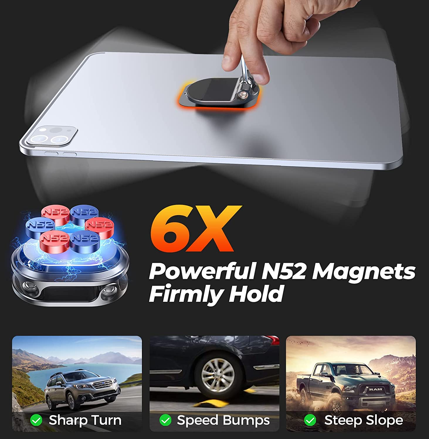 Magnetic suction and adsorption: 60 times N52 magnetic suction to hold your phone firmly (please be sure to use it together with the metal plate).3M high and low temperature resistant stickers, even at 40 degrees Celsius, will not fall off.