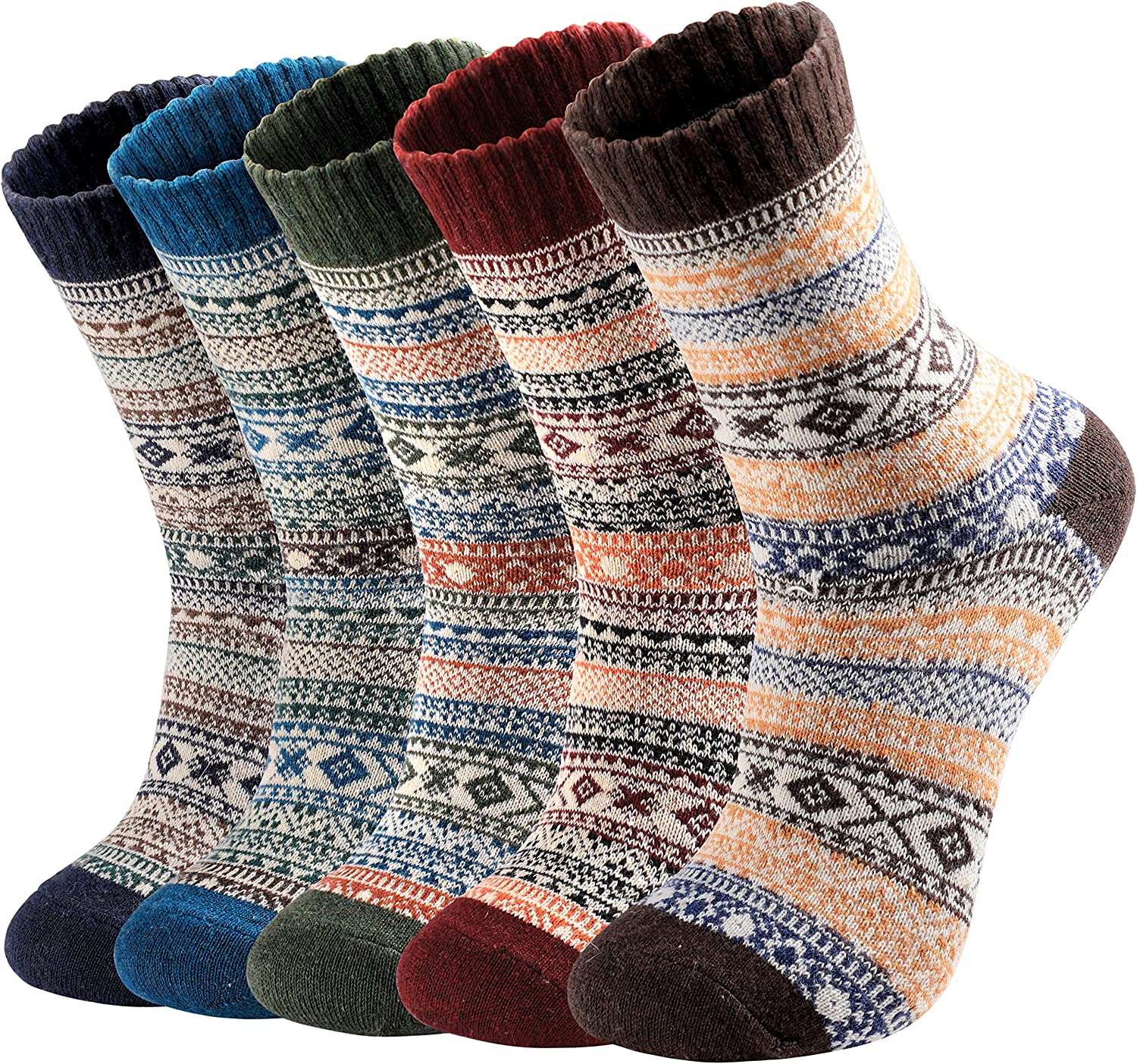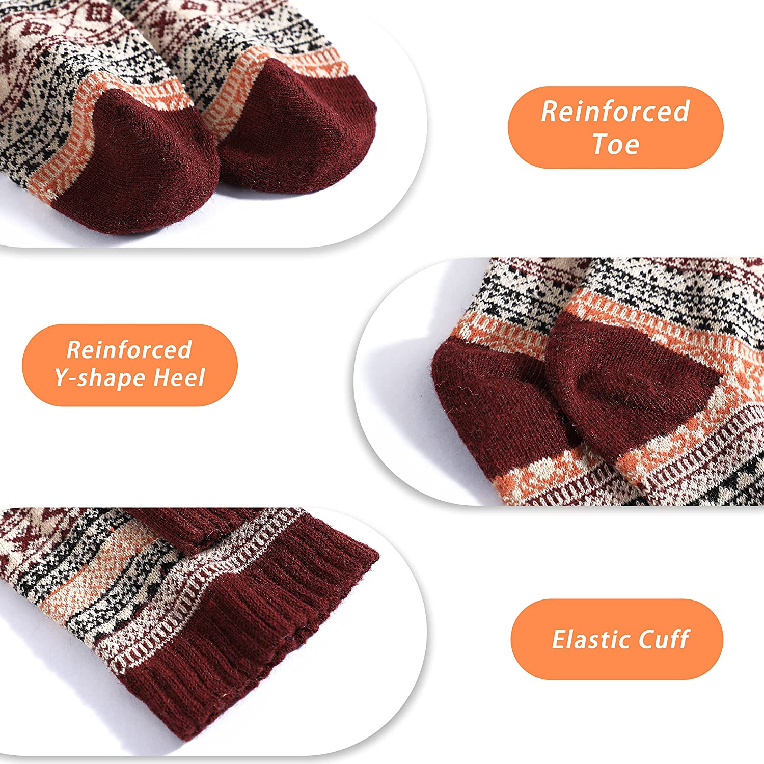 ?CHIC DESIGNS - With unique pattern, vintage trendy designs and easy-matching colors, our warm winter socks are befitting for different situations and coordinate with whatever you're wearing. These vintage wool socks are good matching for all your sneakers, boots, snow boots, and sport shoes. Brighten up those cold winter mornings with thick knit thermal wool socks and keep your feet warm.