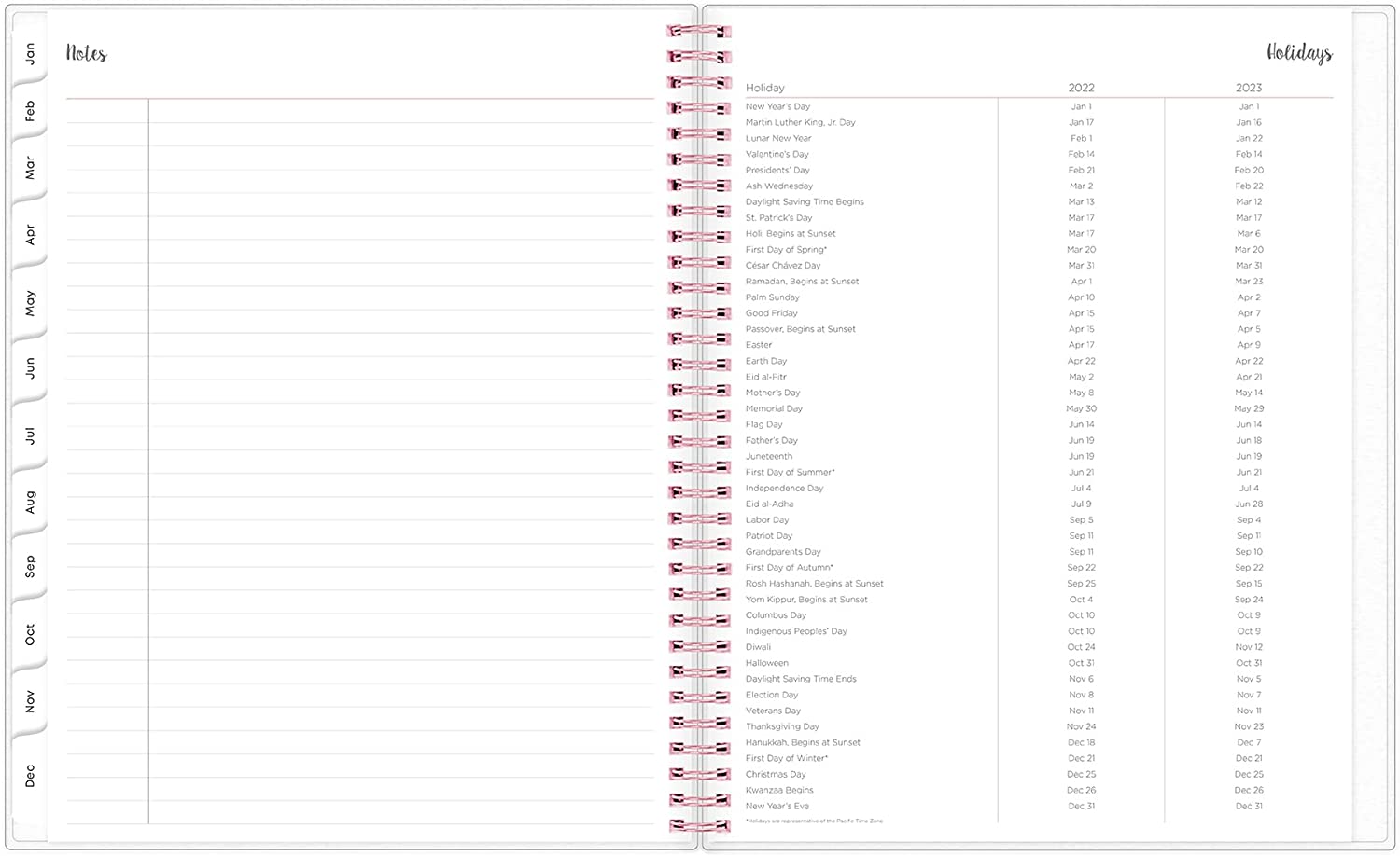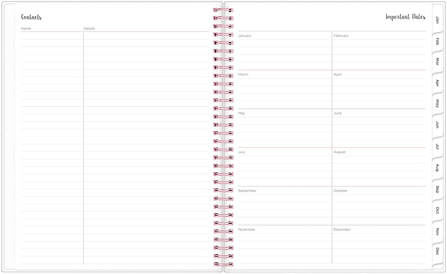 • Printed on high quality white paper for clean writing space, with premium quality covers in rich pink colors and durable, coated tabs that withstand constant use throughout the year