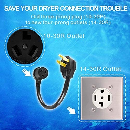 NEMA 14-30P, 30 Amp, 125/250-Volt, 4-prong dryer male plug