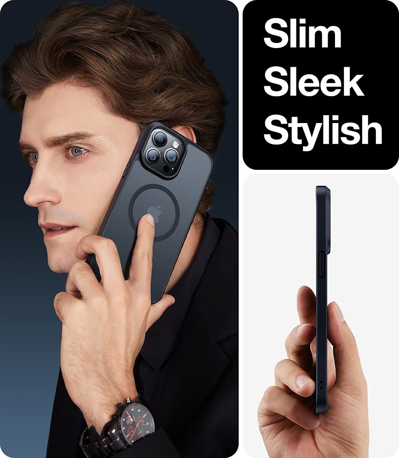 TORRAS Magnetic Shockproof Case is crafted with a built-in magnetic ring made by 38 best N52 magnets which offer a magical attach experience for MagSafe accessories, and faster wireless charging. What's more? This protective 14 Pro case with magnetic back, tested to exceed MIL-Grade PROT standard, can strongly protect your device from falling, collision and face-up or face-down injuries