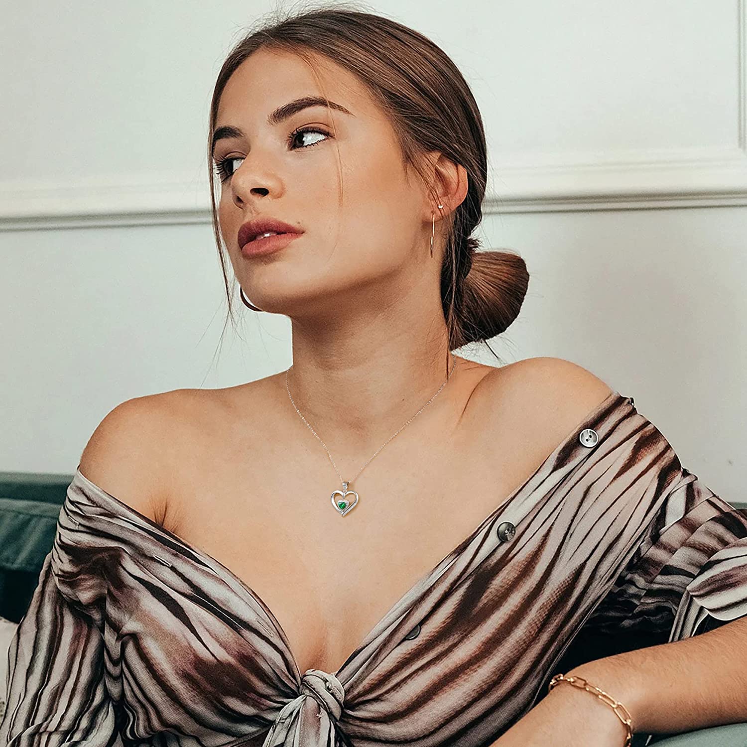 GLIVEOR Heart Birthstone Necklace for Women, S925 Sterling Silver Necklace Birthstone Necklace Heart Necklace for Women Teen Girls Birthday Jewelry Gifts for Women Teen Girls