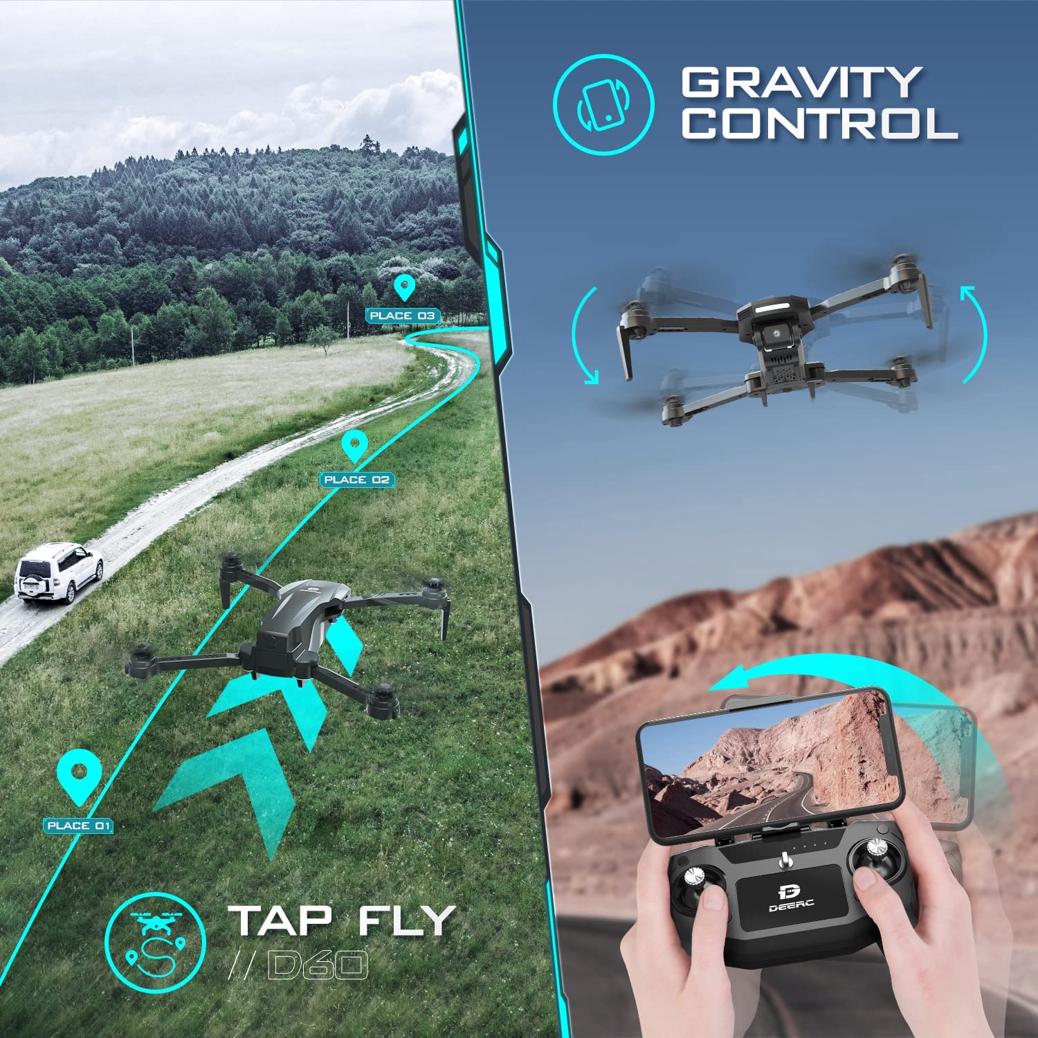 DEERC Drones with Camera for Adults Kids 1080P HD Video, D60 FPV Drone for Beginner with Long Battery Life, Gravity Sensor, Foldable Hobby RC Quadcopters & Multirotors, Toys Gifts for Boys Girls