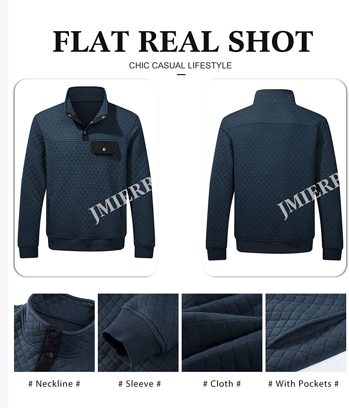 Button closure, long sleeve , Solid color trendy weave sweatshirt, Lightweight mock neck sweatshirt.