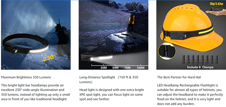 • 230° WIDE BEAM HEADLIGHT & SPOTLIGHT - The new 230° wide beam headlight allows you to illuminate the viewing area without moving your head. Unlike traditional headlights, it has a better view, and you can also use its spotlight to focus on specific areas.