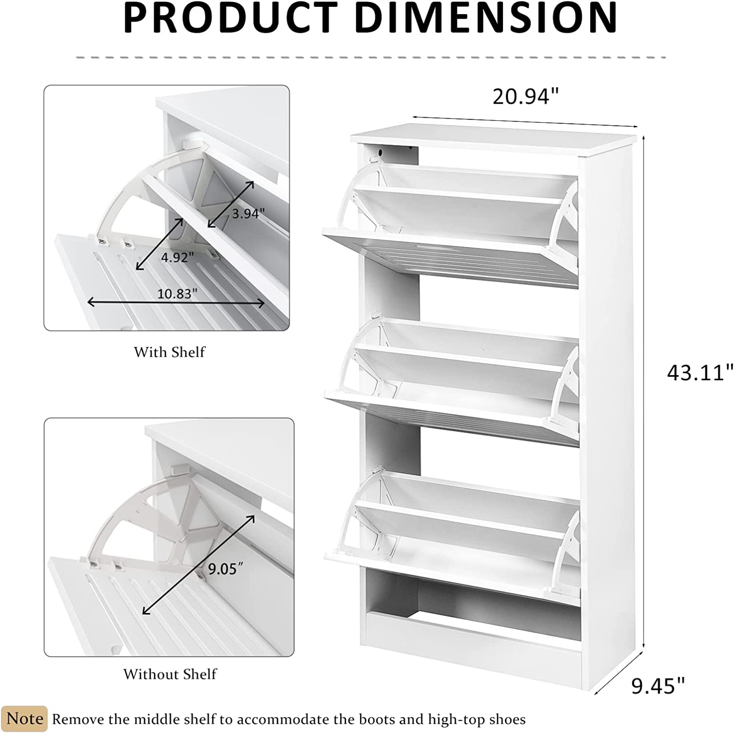 STURDY STRUCTURE: The shoe organizer cabinet adopts waterproof and durable white MDF board, which is easy to wipe. With anti-tipping device on back, it not easy to fall down