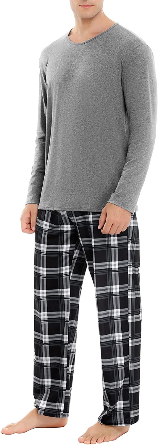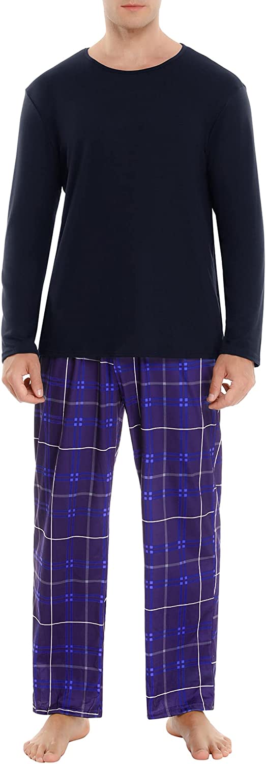 • DESIGN: Our men's pajama set has side pockets, classic plaid; and the elastic, drawstring in waist help you adjust for the best fit.