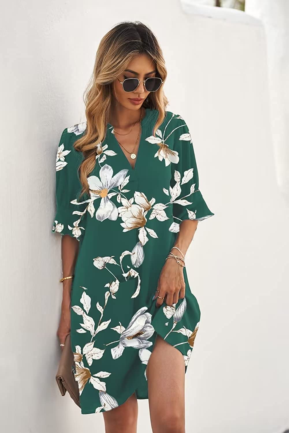 JOCAFIYE Women's Casual Dresses Short/Long Sleeve V-Neck Dress Casual Loose Shift Dresses