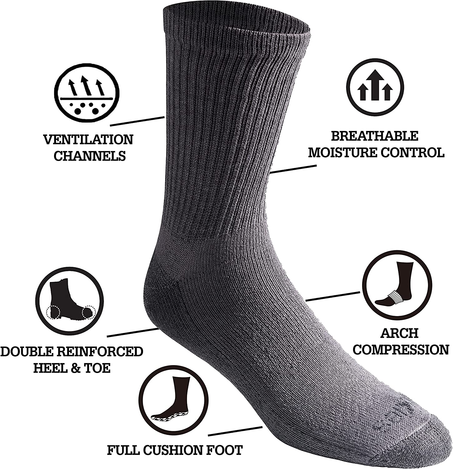 Dickies Men's Dri-tech Moisture Control Comfort Length Crew Socks