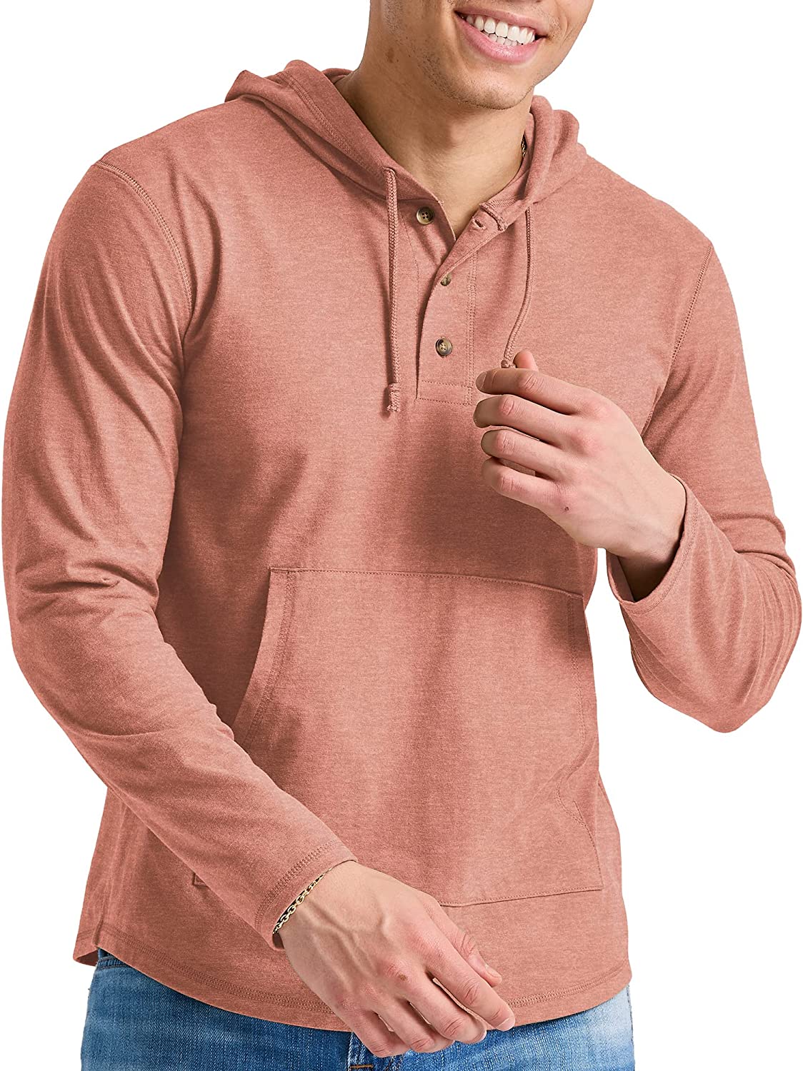 DESIGN DETAILS - 3-button Henley placket, kanga pockets, and knotted drawcords for that Hanes quality you expect.