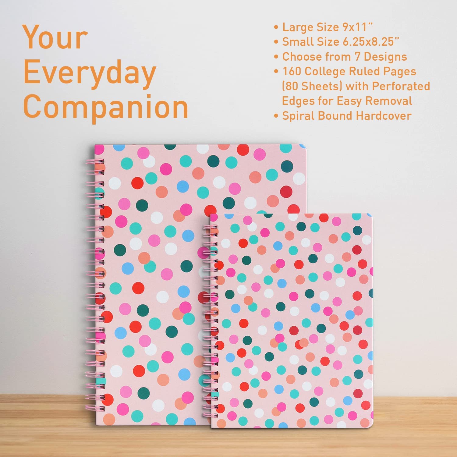 S&O Cute Spiral Notebooks - College Ruled Spiral Notebook with Pockets - Hardcover Notebook for Women - 160 Pages - Cute Notebooks for School & Journal - Polka Dots Notebook - 6.25x8.25"