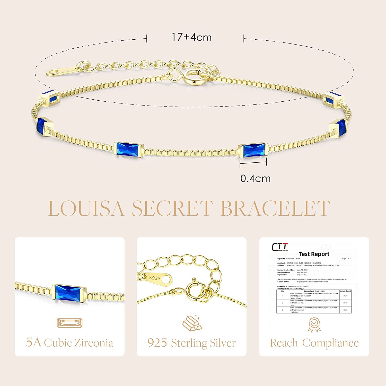 LOUISA SECRET Birthstone Bracelets for Women, 925 Sterling Silver Dainty Simple Link Bracelet, Birthday Anniversary Jewelry Gift for Girls Women