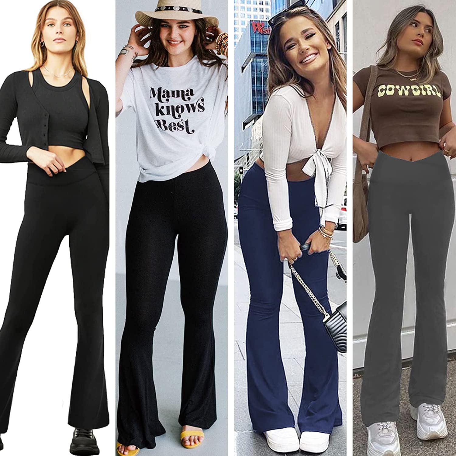 Super Flare&Crossover Design: Flare Leg allow you to move without restriction, effectively helps hide the defects of the calf, and creates the contour and slender appearance of the popular line.The 4.5" wide elastic waistband and a v-seam design which perfectly reveals the navel,trim the waist line and visually elongate the waist ratio.Suitable for ladies of all body types.