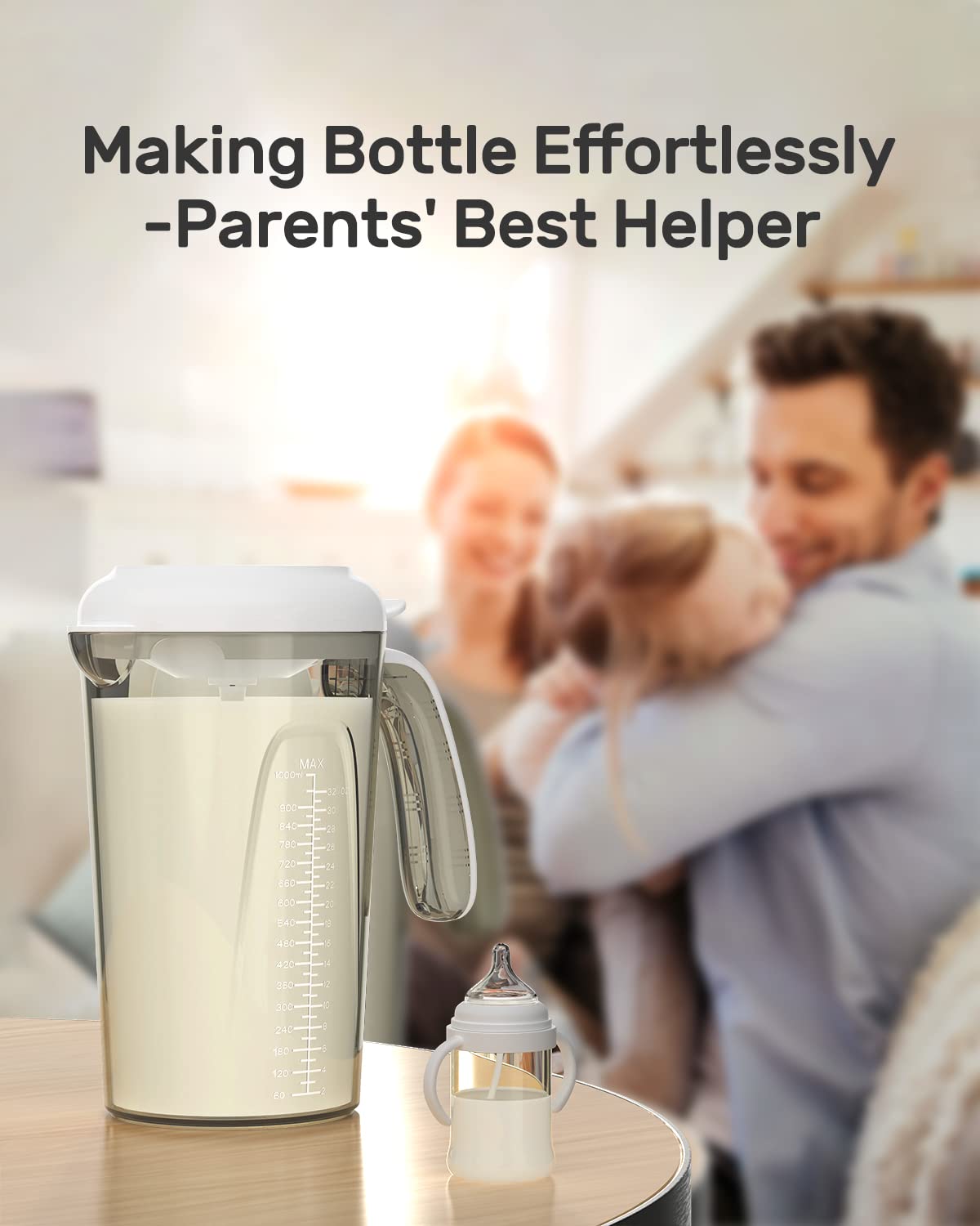 ?【32OZ(1000ML) Large Capacity 】 The large 32oz (1000mL) capacity of the Grownsy formula mixer allows you to mix a day's worth of formula at once. The drip-free spout can easily pour the mixed formula into bottles of all shapes and sizes.