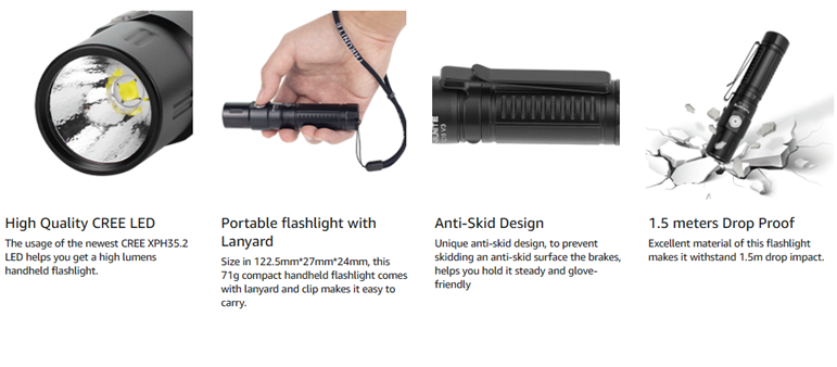 Special Features | High Power, Adjustable Light Modes, Impact Resistant, Non Slip Grip, Rechargeable |