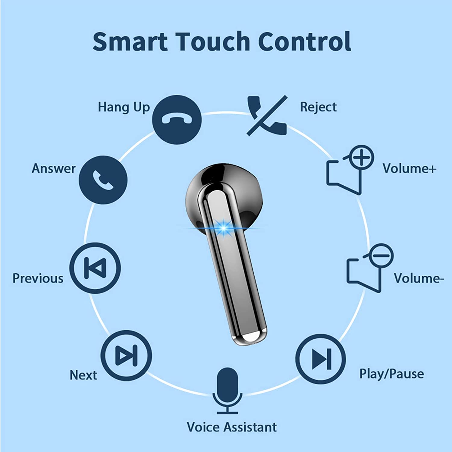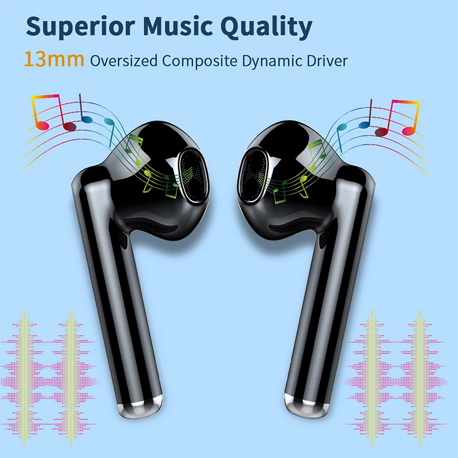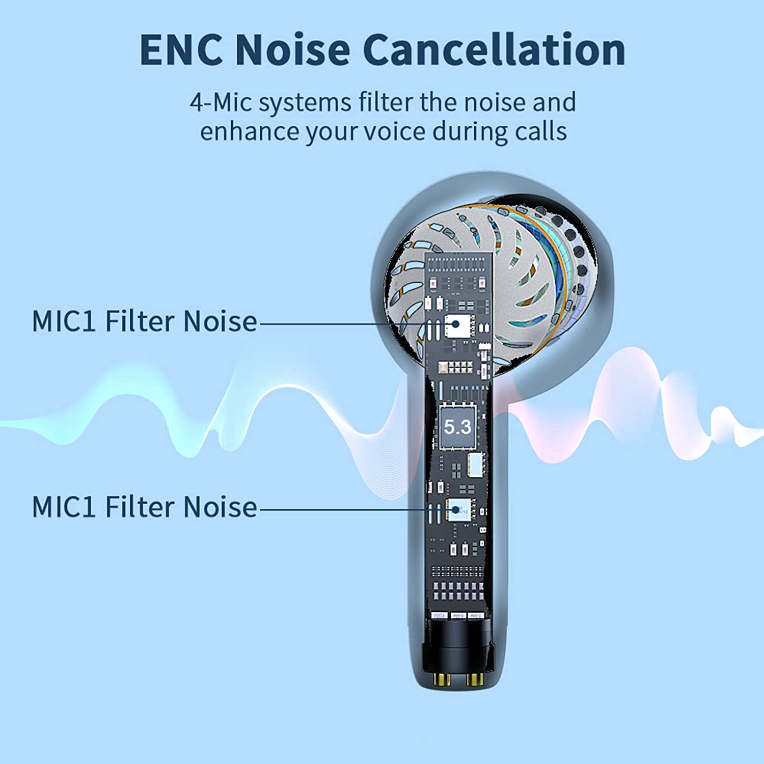 • 4 Microphones Design and Crystal Clear Call: The wireless headphones adopts 4-microphone design and ENC noise cancelling technology. 2 built-in mics in each earbud utilize ENC noise cancellation to ensure clear and truly sound, allowing you to enjoy high quality conversations anytime, anywhere, as if you were talking to someone face-to-face. You will experience a smoother and clearer calls than ever with no more worries about the other party's incomprehension.