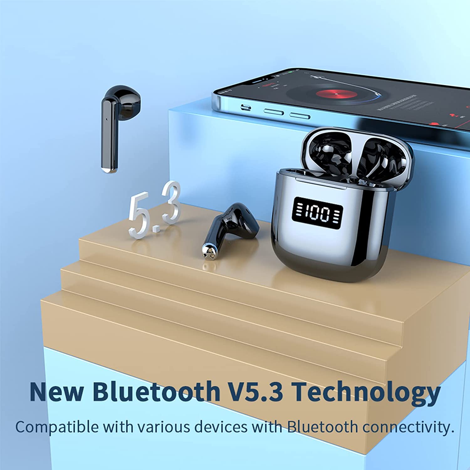 Wireless Earbuds, Bluetoth Earbuds Bluetooth 5.3 Headphones with 4 Mic, 2023 ear buds wireless Headphones, HiFi Stereo Noise Cancelling Bluetooth Earphones, LED Display, 25H Playtime for Sport Black