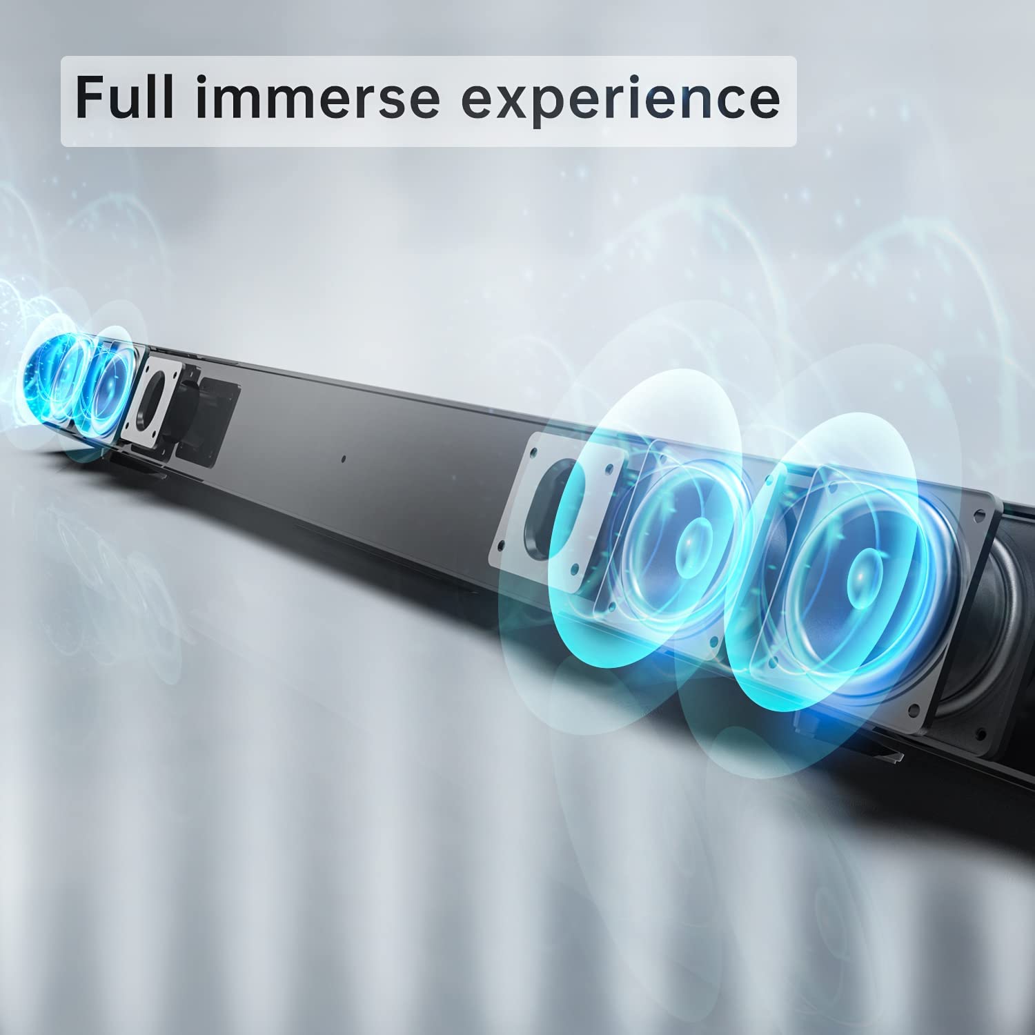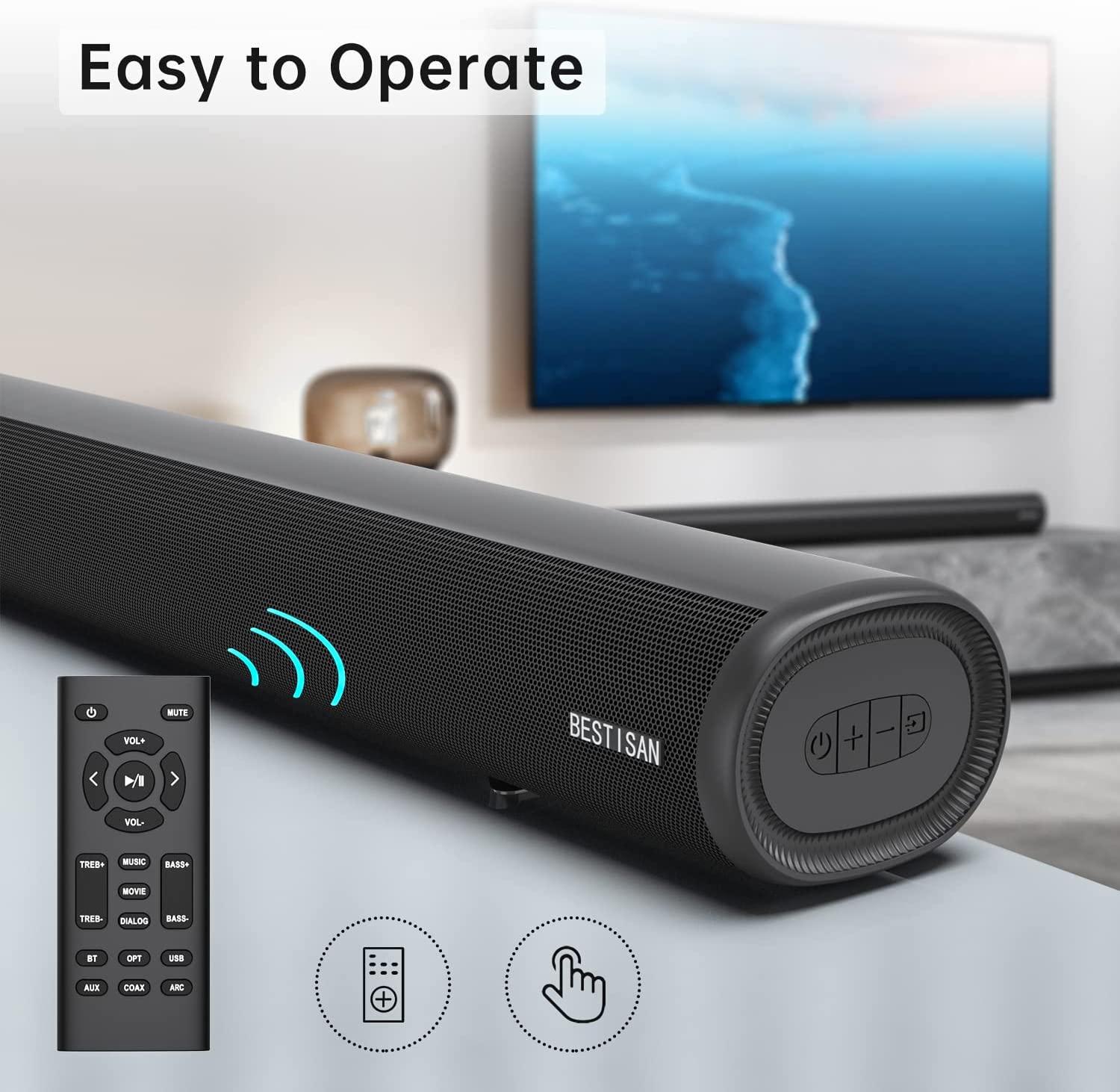 BESTISAN Sound bar for TV, 80W TV Sound bar with 4 Full-Range Speaker, 33Inch Surround Soundbar with Multi-Function Connections(Bluetooth/HDMI/Optical/Coaxial/AUX/USB)