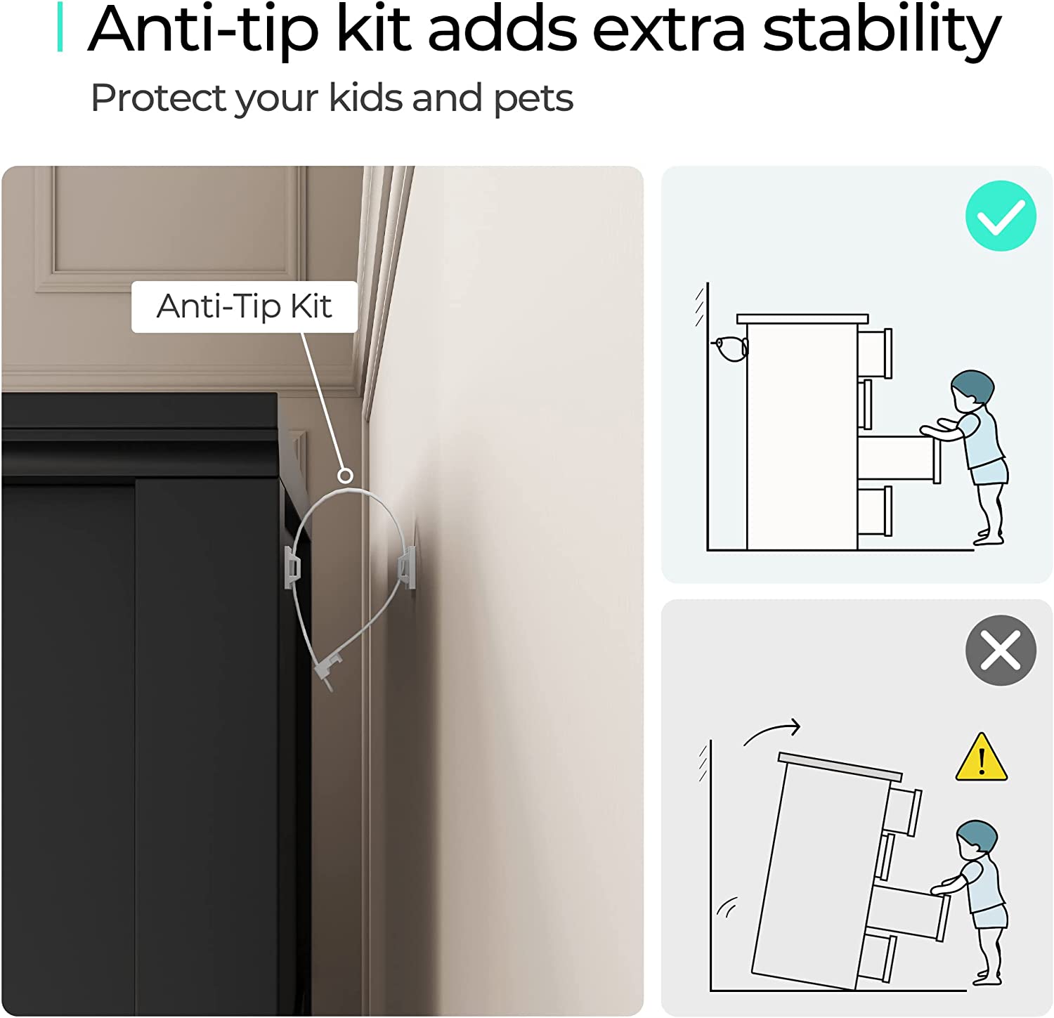 [SAFETY FIRST] - Wall anchor kit provided to prevent tip-over incidents. Smooth metal runners on each drawer with safety stops prevent drawers from puling out.