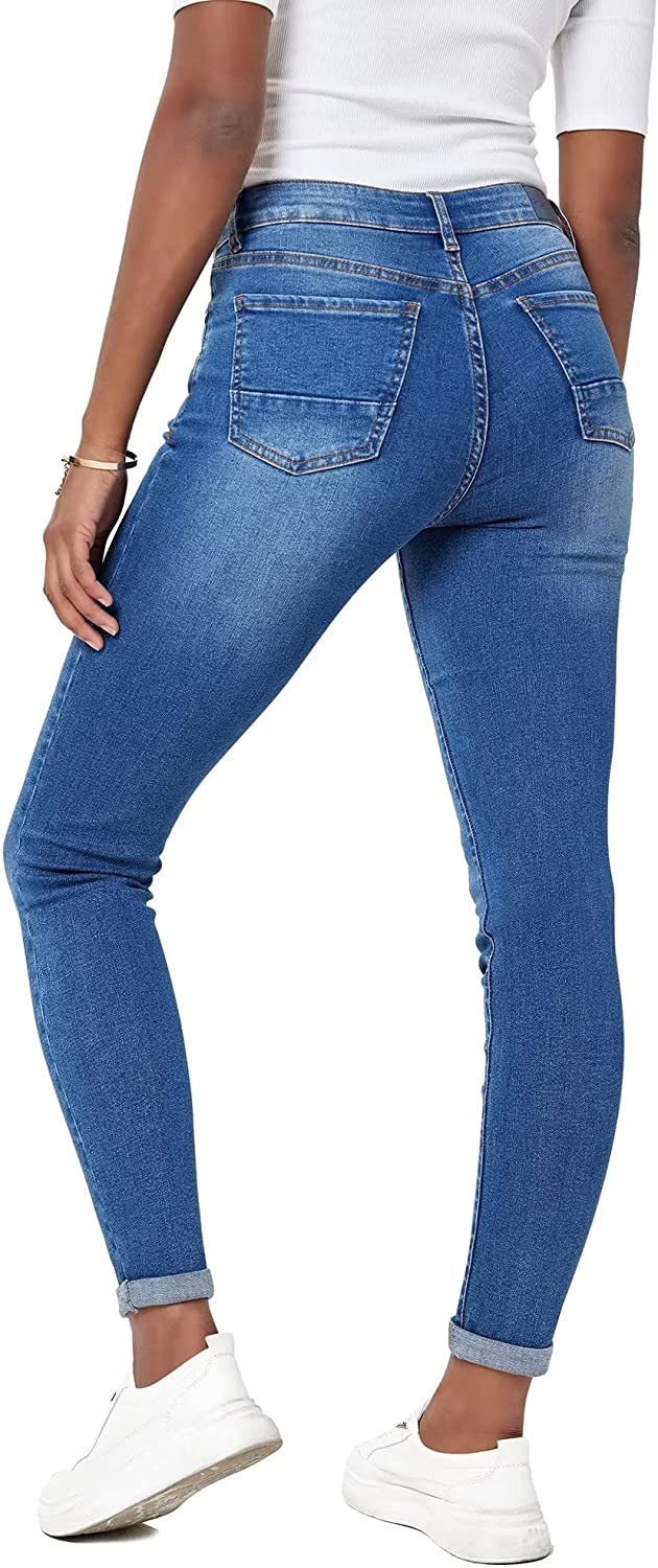 RHODANTHE Women's Ripped Skinny Jeans Stretch Boyfriend Trendy Jean Women Straight Distressed Jeans