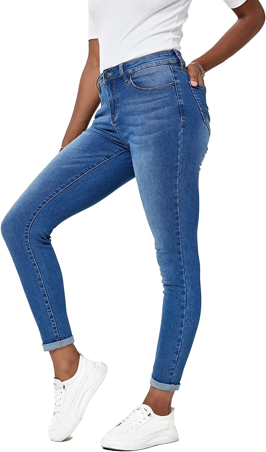 Women Butt Lift 3 Buttons Wide High Waist Stretch Denim Skinny Jeans with Short/Long Inseam